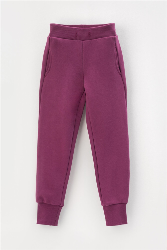 Трикотажные брюки для девочки из футера с начесом. В составе 80% натурального хлопка и 20% полиэстера, при этом полиэстер ввязан внутрь по особой технологии и не соприкасается с кожей. Эластичный пояс на резинке регулируется по ширине с помощью шнурка, по бокам два удобных кармана, внизу эластичные манжеты.