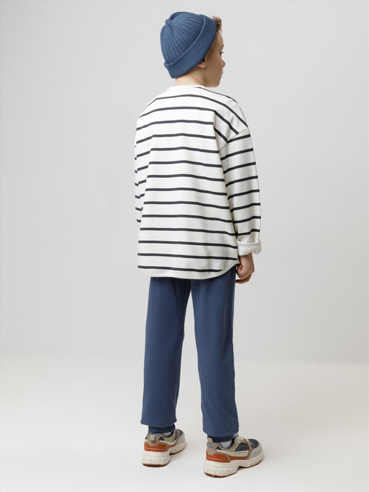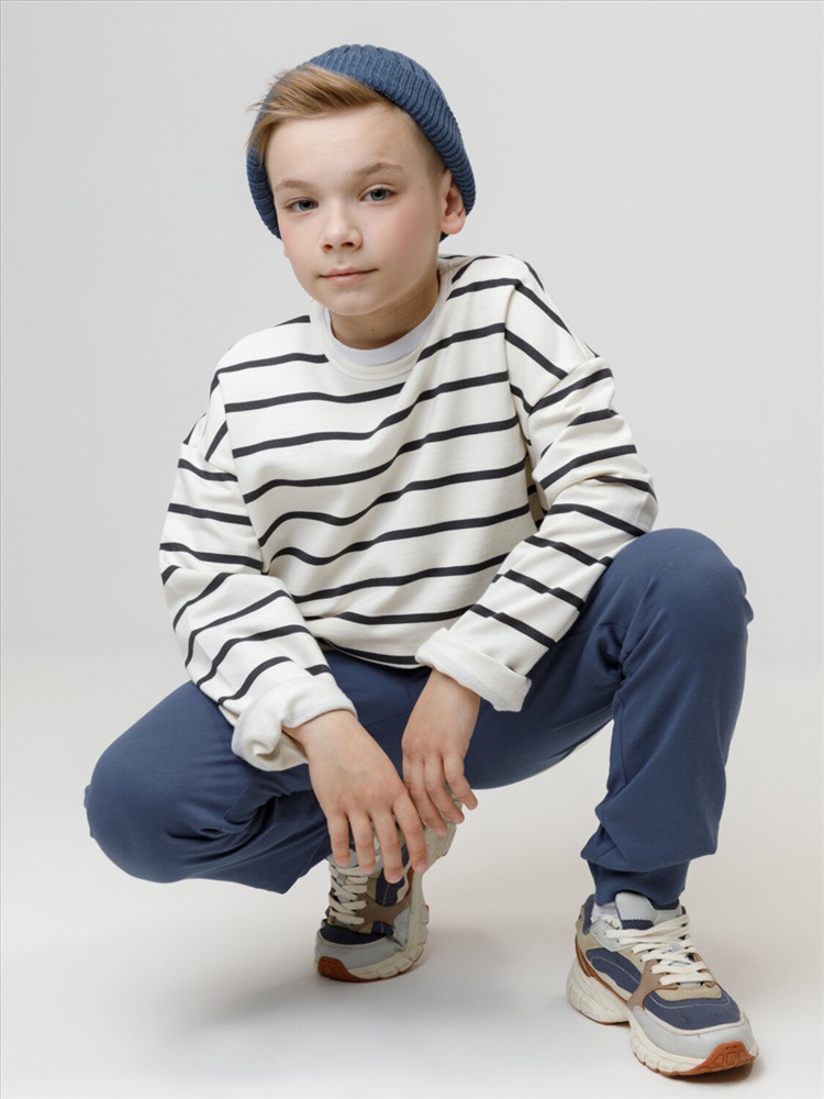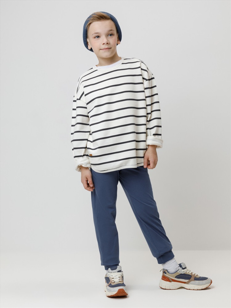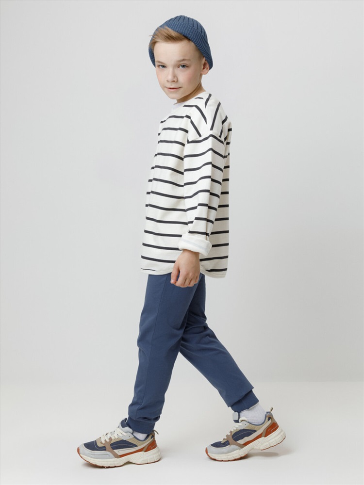 Брюки для мальчика из высококачественного трикотажного полотна. Пояс на резинке регулируется по ширине с помощью шнурка. По бокам два удобных кармана. Внизу эластичные манжеты.