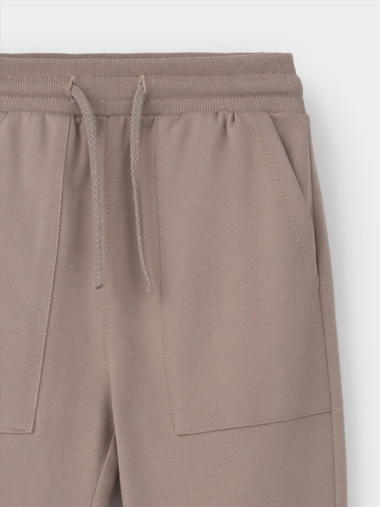 Брюки для мальчика из мягкого петельчатого трикотажа. Эластичный пояс на резинке регулируется по ширине с помощью шнурка. По бокам два удобных накладных кармана. Внизу эластичные манжеты.