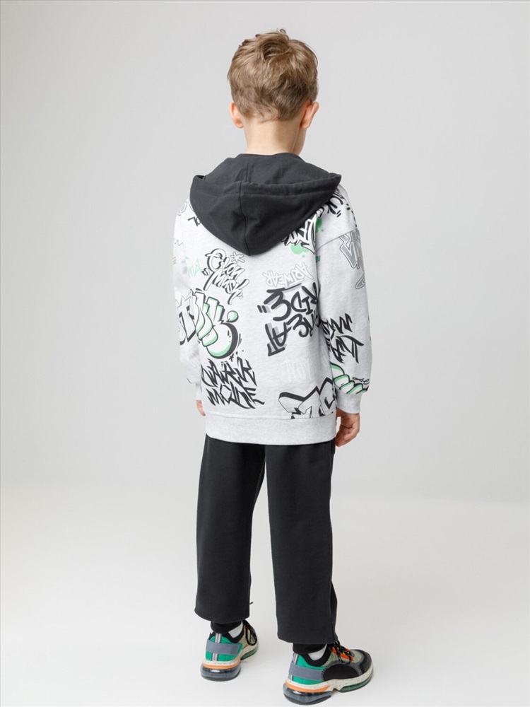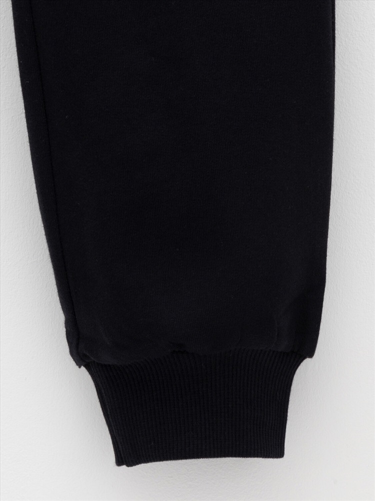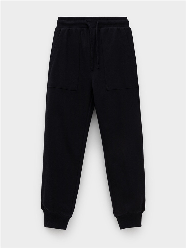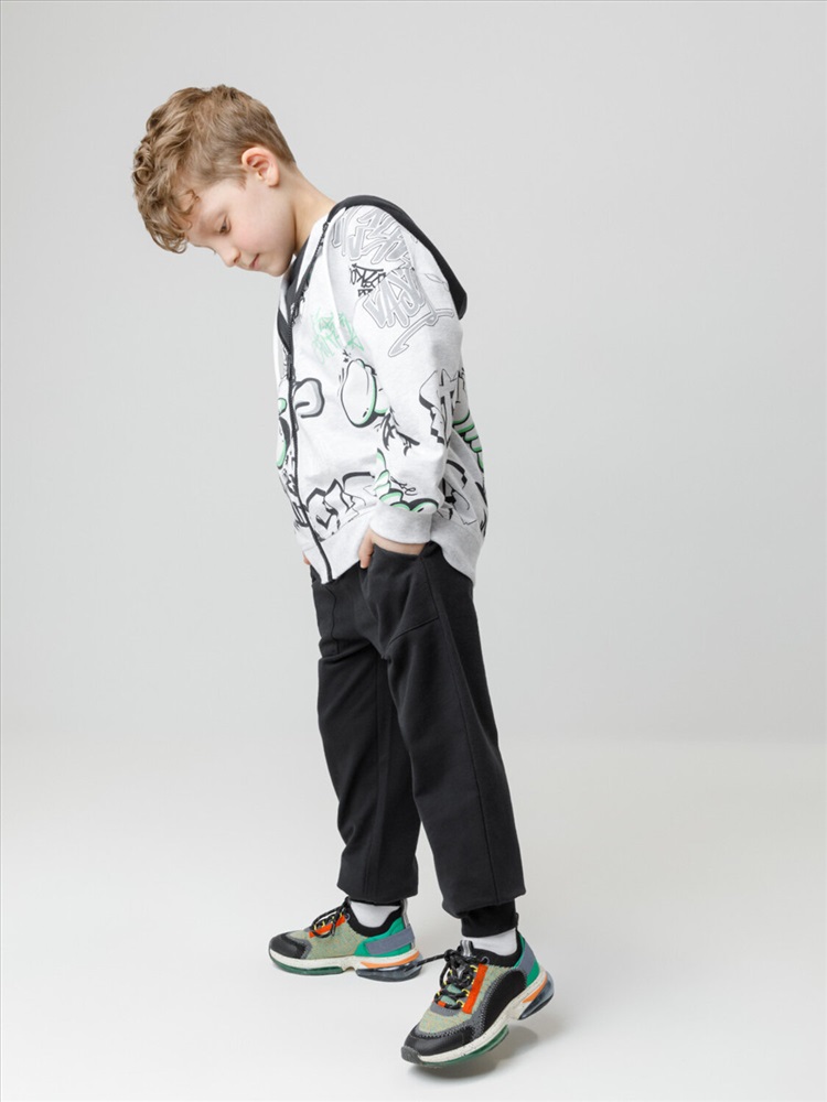 Брюки для мальчика из мягкого петельчатого трикотажа. Эластичный пояс на резинке регулируется по ширине с помощью шнурка. По бокам два удобных накладных кармана. Внизу эластичные манжеты.