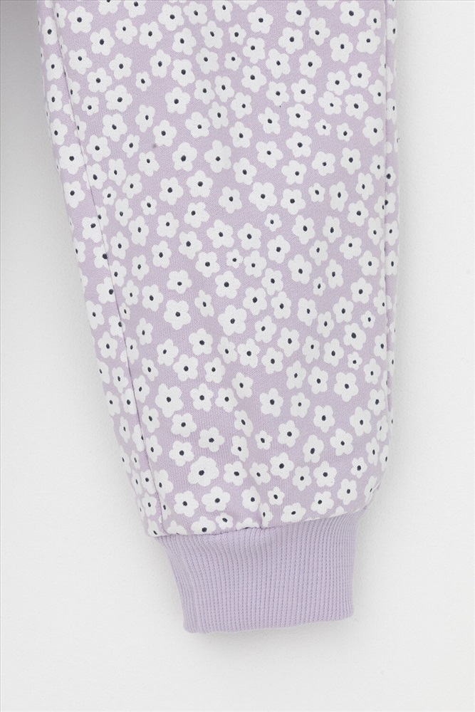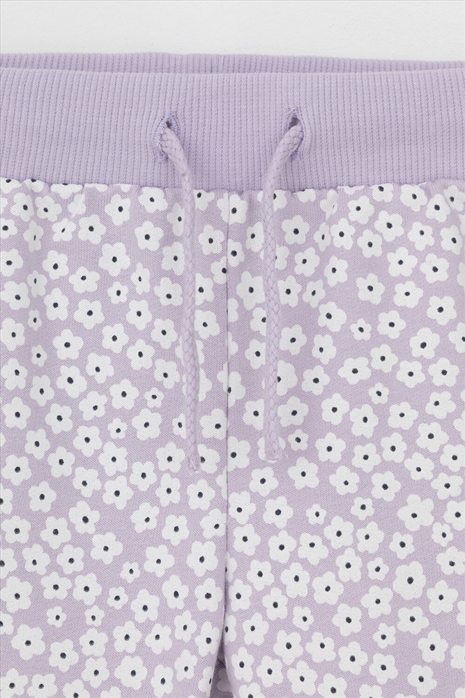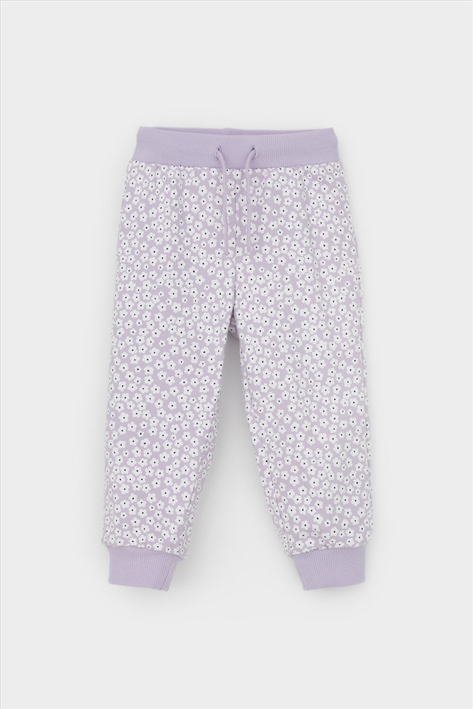 Трикотажные брюки для девочки из петельчатого футера. Эластичный пояс на резинке регулируется по ширине с помощью шнурка, внизу эластичные манжеты.