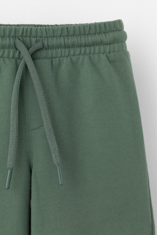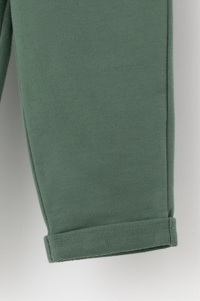 Трикотажные брюки для мальчика из петельчатого футера. Эластичный пояс на резинке регулируется по ширине с помощью шнурка, внизу отвороты.