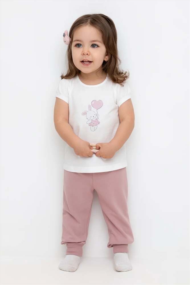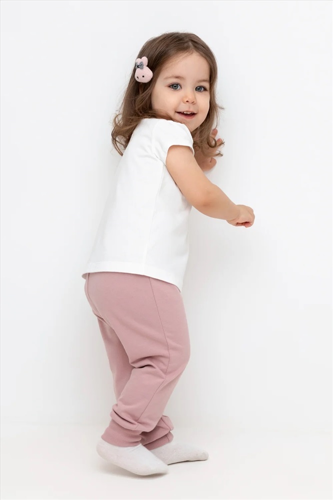 Трикотажные брюки для девочки из футера с начесом. Эластичный пояс на резинке регулируется по ширине с помощью шнурка, внизу эластичные манжеты.