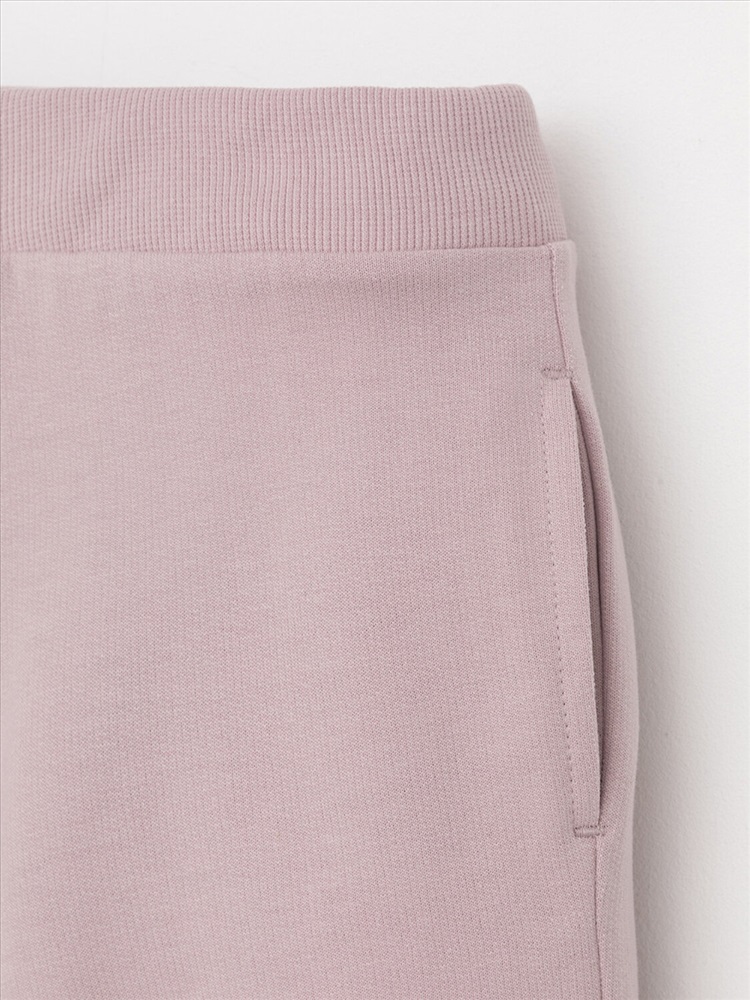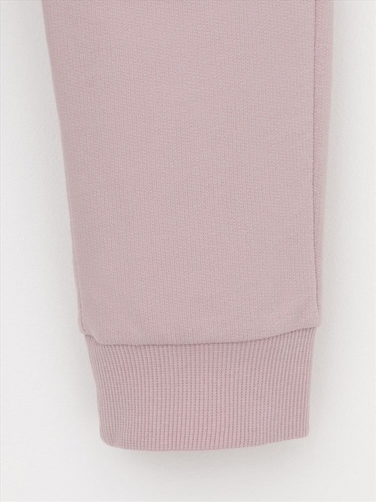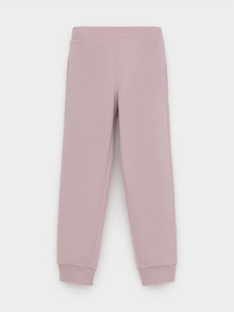 Трикотажные брюки для девочки из мягкого петельчатого футера. Эластичный пояс на резинке, по бокам два удобных кармана, внизу эластичные манжеты.