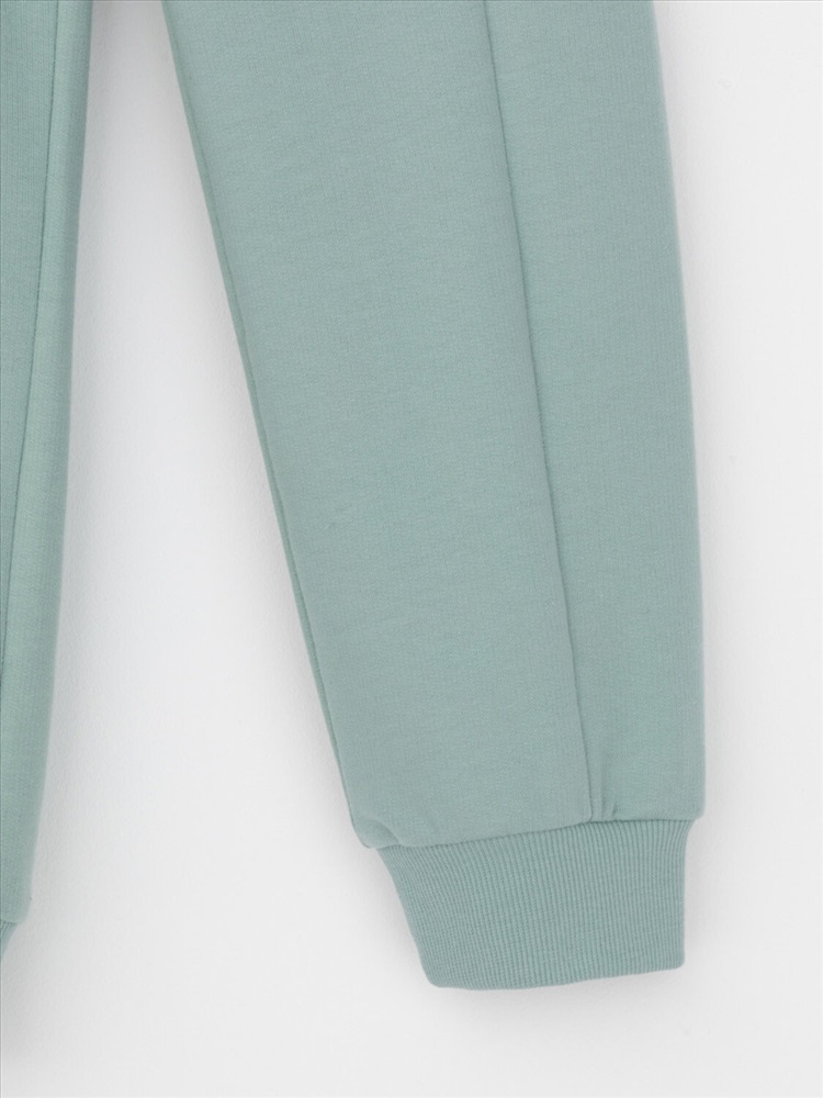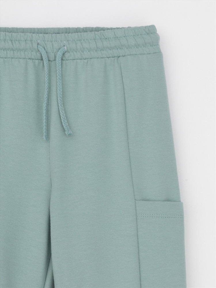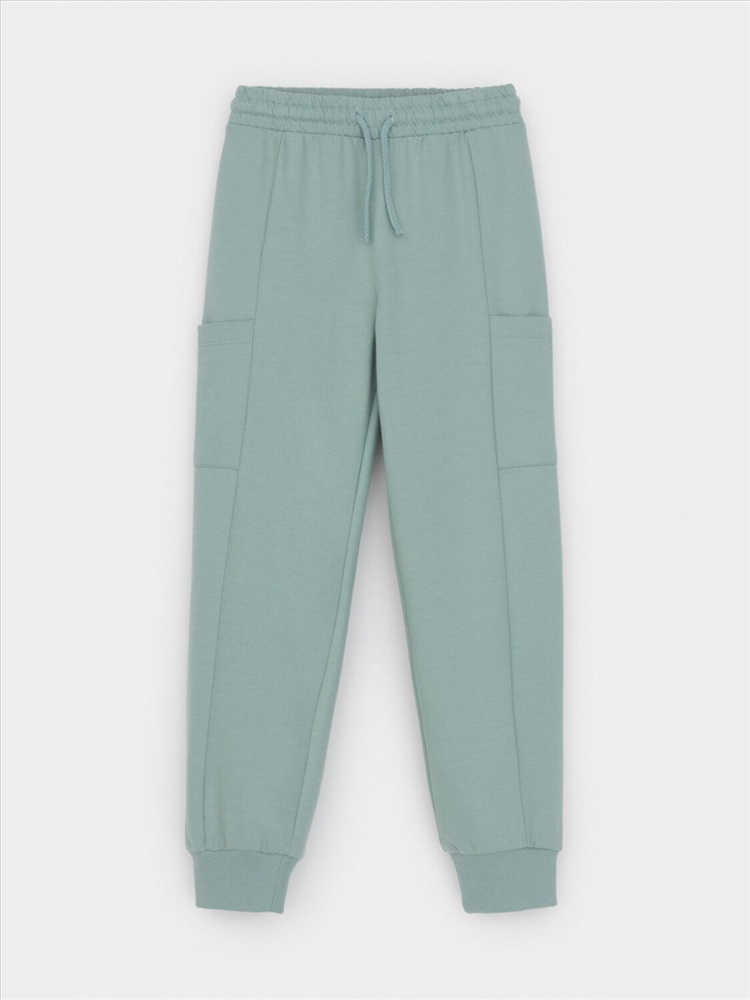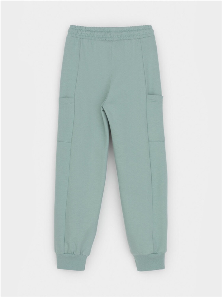 Брюки для девочки из мягкого петельчатого трикотажа. Эластичный пояс на резинке регулируется по ширине с помощью шнурка, по бокам два удобных кармана, внизу эластичные манжеты.