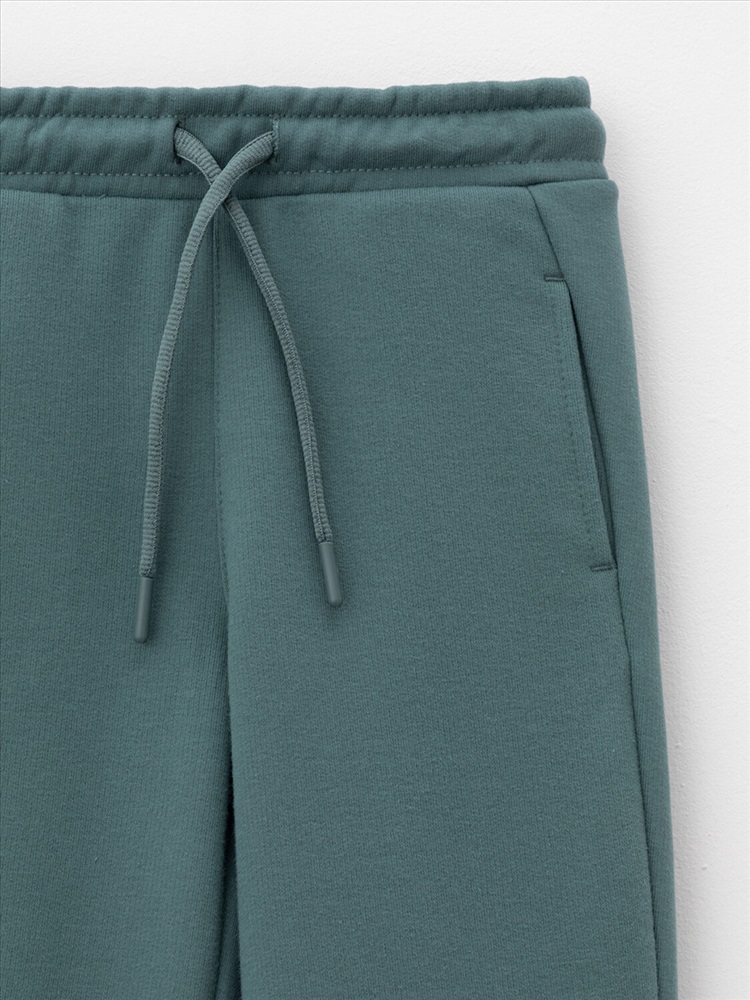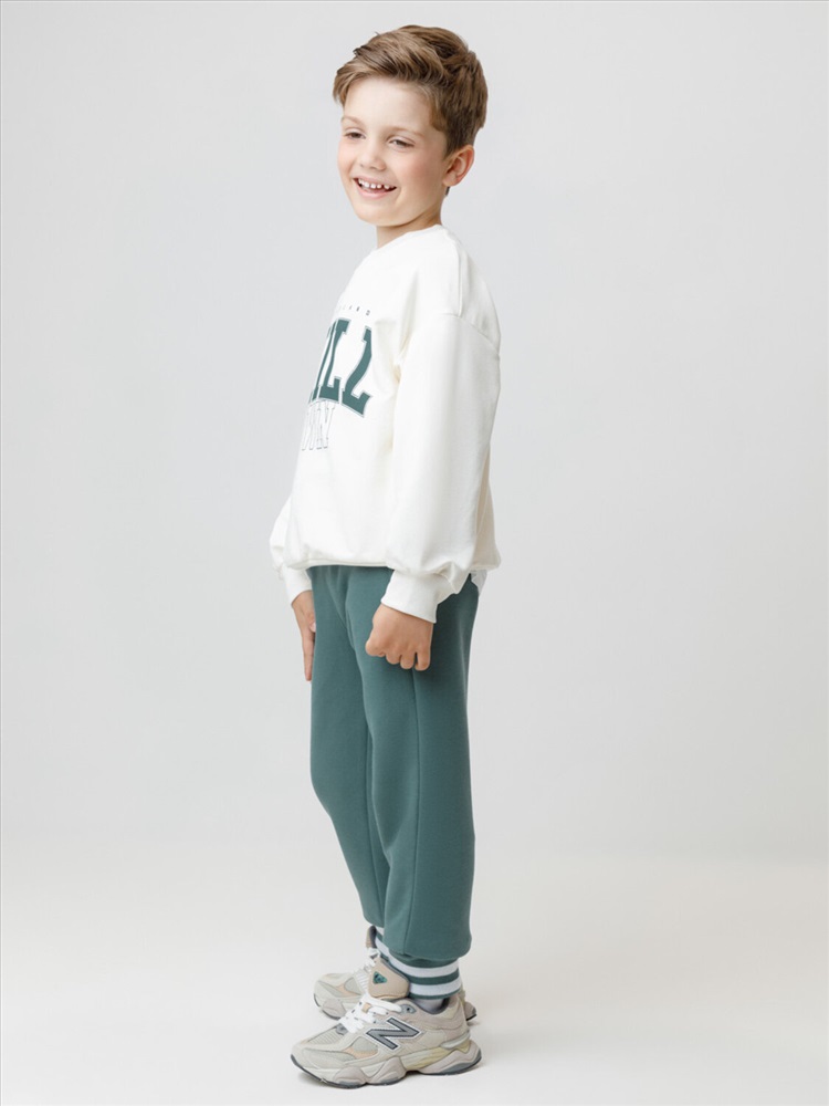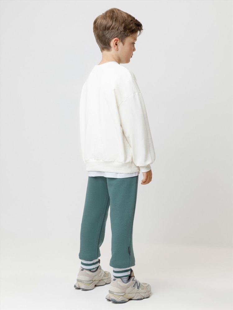 Объёмные брюки для мальчика из мягкого петельчатого трикотажа. В составе 80% натурального хлопка и 20% полиэстера, при этом полиэстер ввязан внутрь по особой технологии и не соприкасается с кожей. Эластичный пояс на резинке регулируется по ширине с помощью шнурка, по бокам два удобных кармана, внизу эластичные манжеты.
