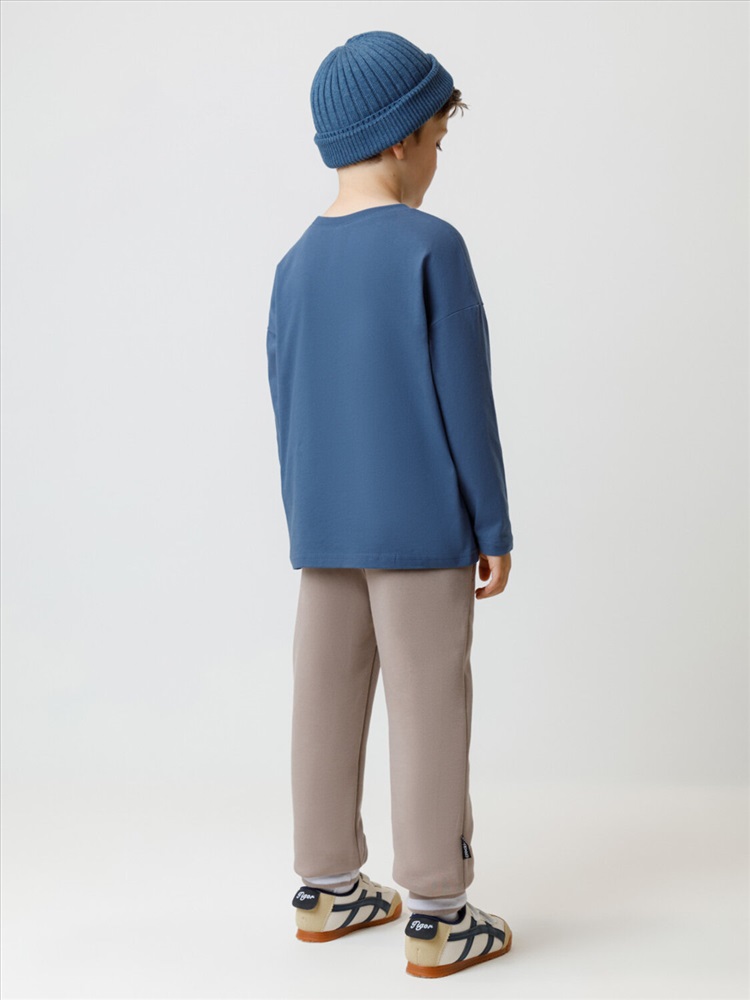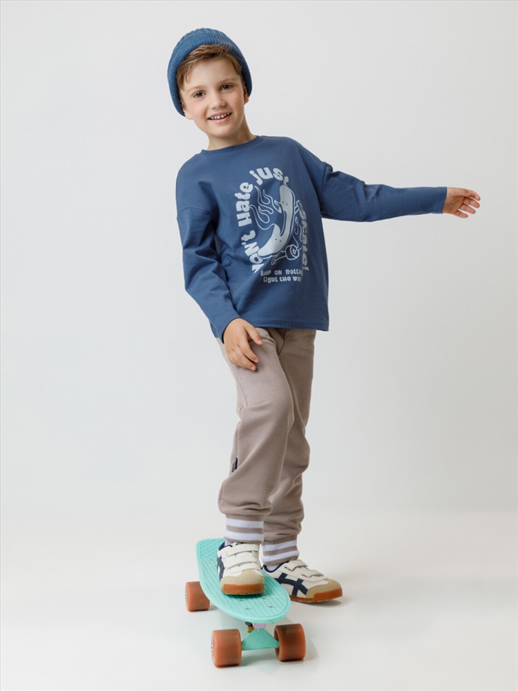 Объёмные брюки для мальчика из мягкого петельчатого трикотажа. В составе 80% натурального хлопка и 20% полиэстера, при этом полиэстер ввязан внутрь по особой технологии и не соприкасается с кожей. Эластичный пояс на резинке регулируется по ширине с помощью шнурка, по бокам два удобных кармана, внизу эластичные манжеты.
