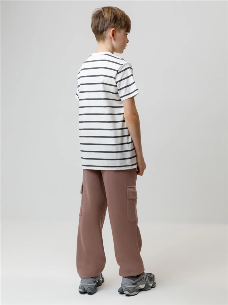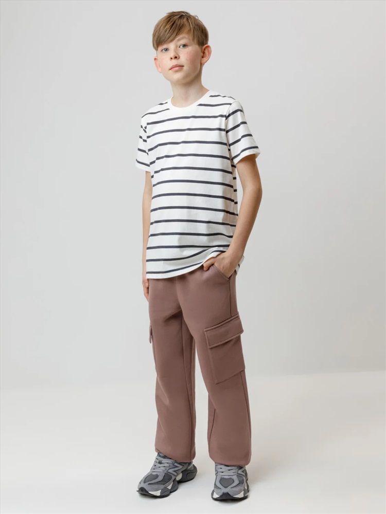 Брюки для мальчика из мягкого петельчатого футера трёхнитки. В составе 80% натурального хлопка и 20% полиэстера, при этом полиэстер ввязан внутрь по особой технологии и не соприкасается с кожей. Модель с эластичным поясом на резинке и утягивающим шнурком для регулировки по талии. По бокам четыре удобных кармана. Низ на манжетах. Изделие сохраняет цвет и форму после многократных стирок. Все трикотажные полотна производятся в соответствии с нормами швейцарского сертификата ЭкоТекс.