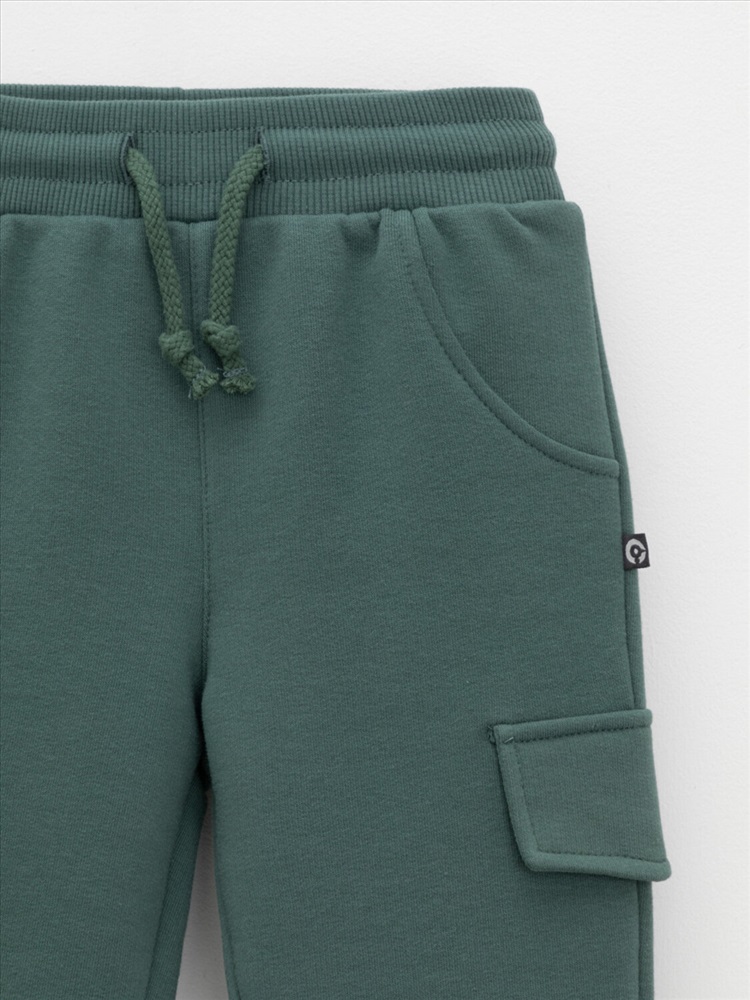Брюки для мальчика из мягкого петельчатого футера трёхнитки. В составе 80% натурального хлопка и 20% полиэстера, при этом полиэстер ввязан внутрь по особой технологии и не соприкасается с кожей. Модель с эластичным поясом на резинке и утягивающим шнурком для регулировки по талии. По бокам два накладных клапана без карманов. Низ на манжетах. Изделие сохраняет цвет и форму после многократных стирок. Все трикотажные полотна производятся в соответствии с нормами швейцарского сертификата ЭкоТекс.
