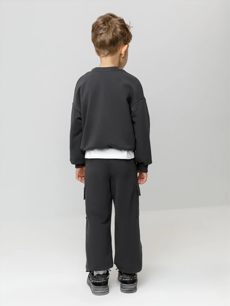 Брюки для мальчика из мягкого петельчатого футера трёхнитки. В составе 80% натурального хлопка и 20% полиэстера, при этом полиэстер ввязан внутрь по особой технологии и не соприкасается с кожей. Модель с эластичным поясом на резинке и утягивающим шнурком для регулировки по талии. По бокам четыре удобных кармана. Низ на манжетах. Изделие сохраняет цвет и форму после многократных стирок. Все трикотажные полотна производятся в соответствии с нормами швейцарского сертификата ЭкоТекс.