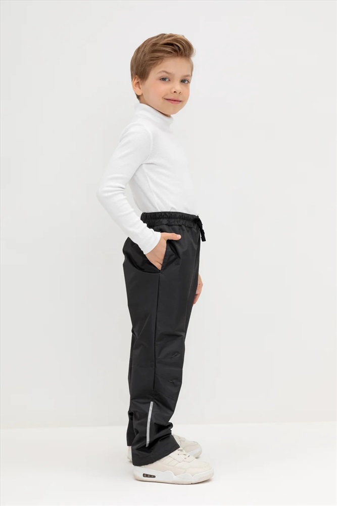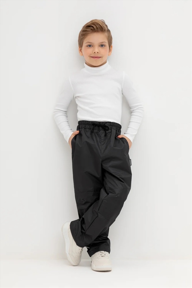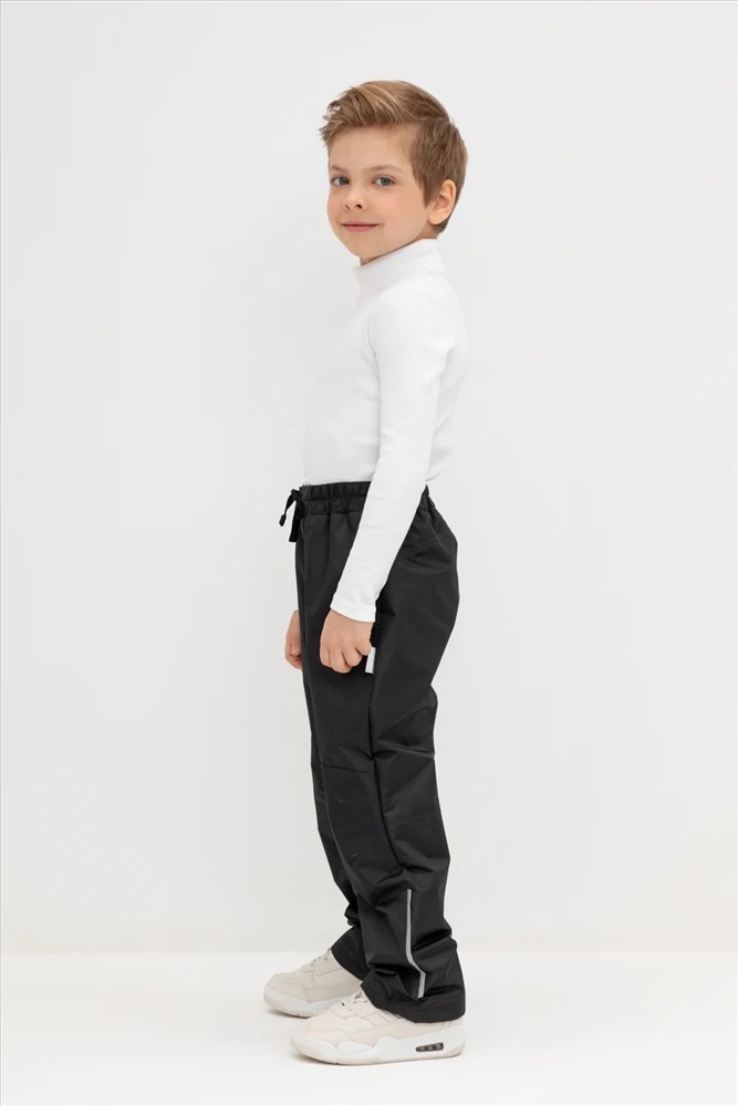 Ветровочные брюки из мембранной, фактурной ткани с дополнительной тефлоновой обработкой. Данный вид обработки предохраняет изделие от загрязнения и лучше отводит влагу. Подклад из 100% хлопка. Область коленей дополнительно усилена деталями из основной ткани. В поясе предусмотрен шнурок для регулировки ширины изделия. Во всех изделиях верхнего ассортимента для безопасности ребенка предусмотрены светоотражающие элементы.