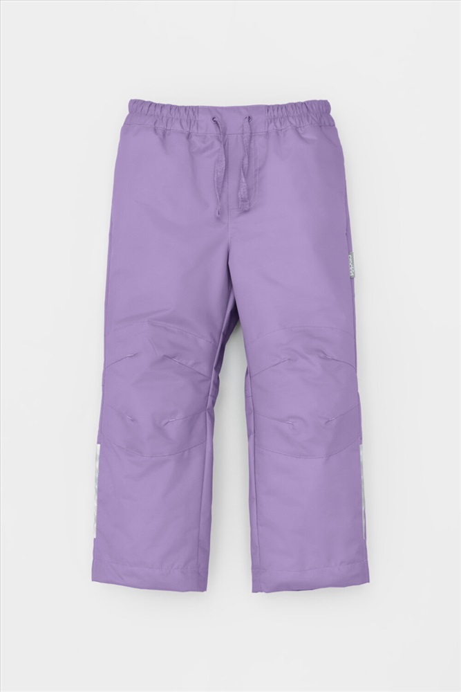 Ветровочные брюки из мембранной, фактурной ткани с дополнительной тефлоновой обработкой. Данный вид обработки предохраняет изделие от загрязнения и лучше отводит влагу. Подклад из 100% хлопка. Область коленей дополнительно усилена деталями из основной ткани. В поясе предусмотрен шнурок для регулировки ширины изделия. Во всех изделиях верхнего ассортимента для безопасности ребенка предусмотрены светоотражающие элементы.
