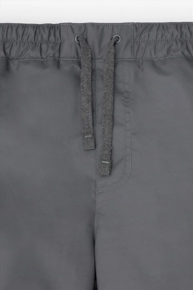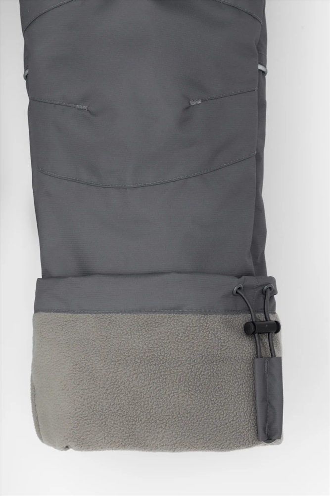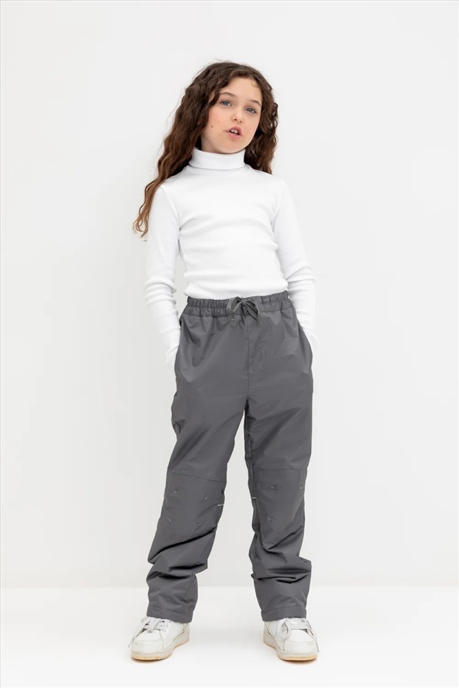 Ветровочные брюки из мембранной, фактурной ткани с дополнительной тефлоновой обработкой. Данный вид обработки предохраняет изделие от загрязнения и лучше отводит влагу. Подклад из 100% полиэстера - флиса. Область коленей дополнительно усилена деталями из основной ткани. В поясе предусмотрен шнурок для регулировки ширины изделия. Во всех изделиях верхнего ассортимента для безопасности ребенка предусмотрены светоотражающие элементы.