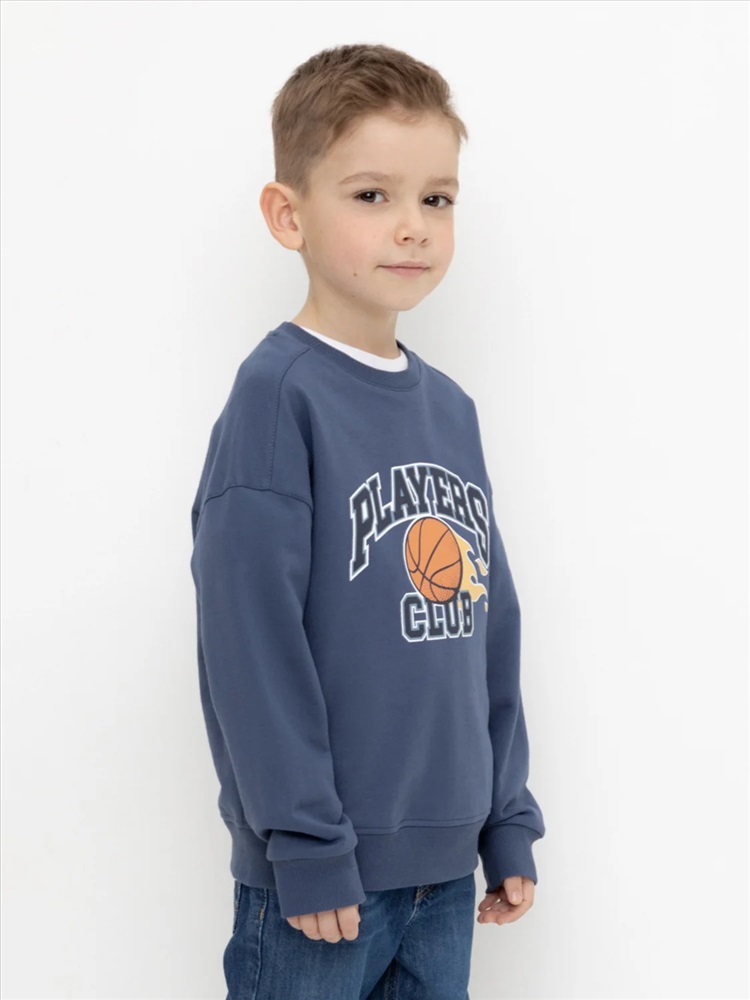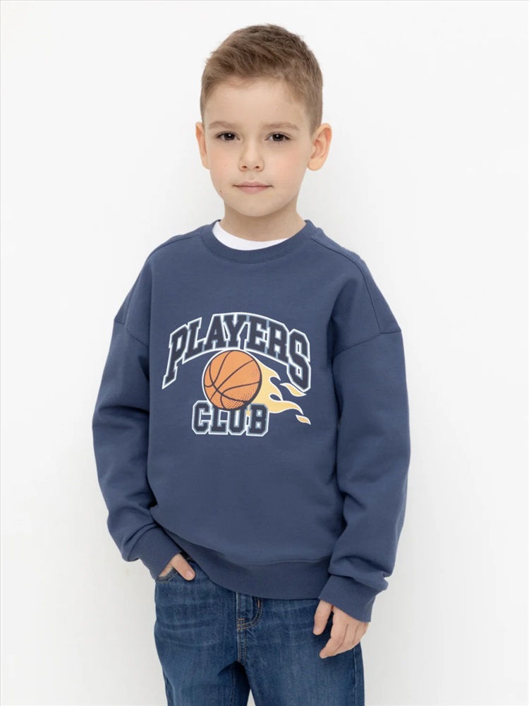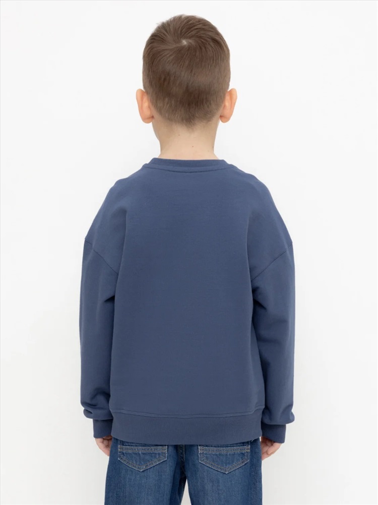 Джемпер для мальчика из высококачественного петельчатого футера. Обтачка горловины, манжеты и пояс выполнены из эластичного полотна. Оригинальный принт нанесён с помощью стойких текстильных гипоаллергенных красителей.