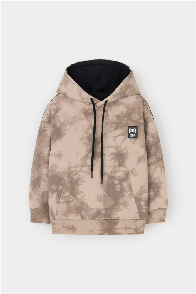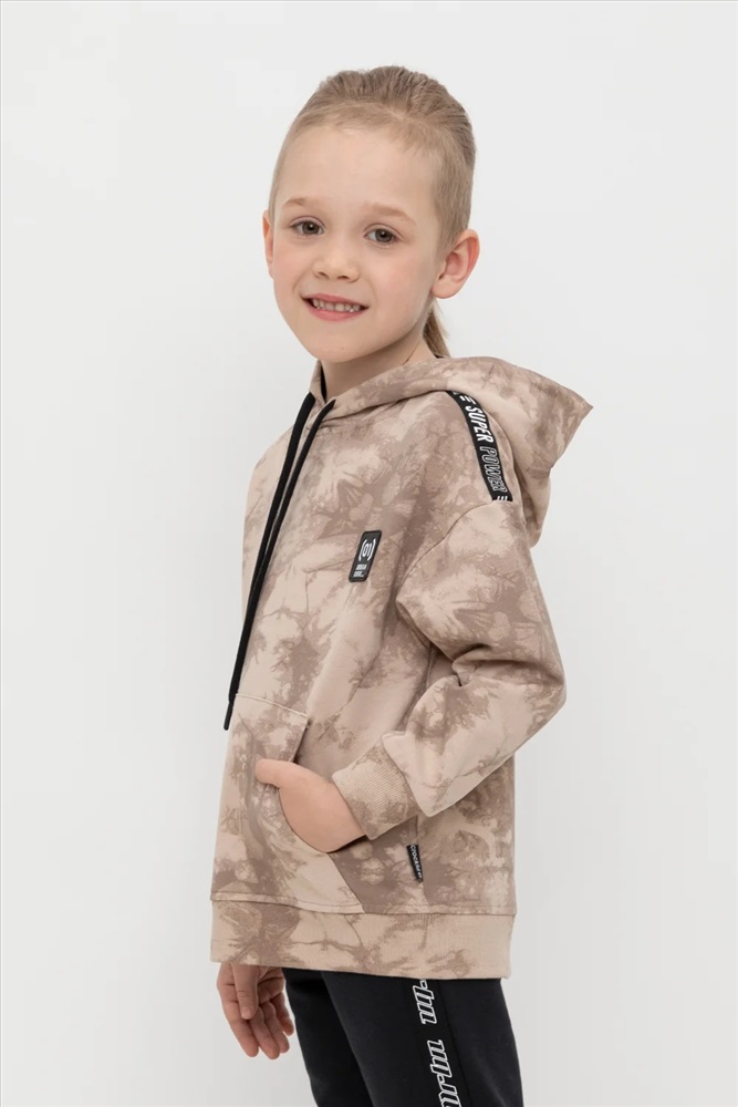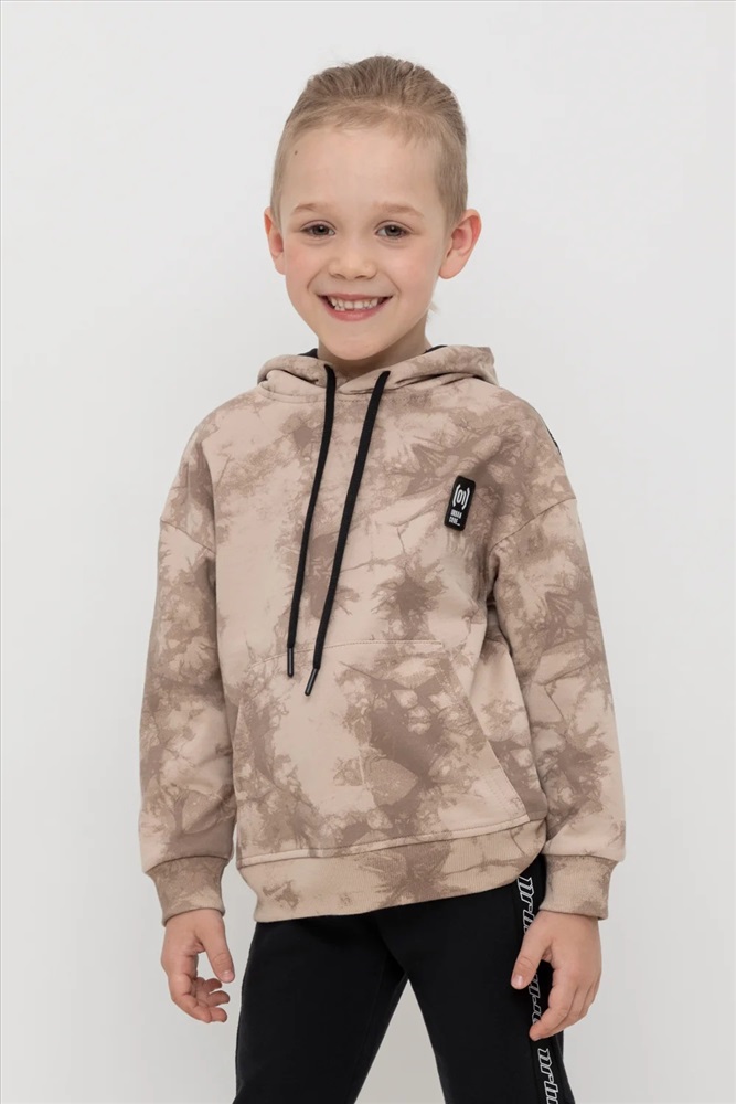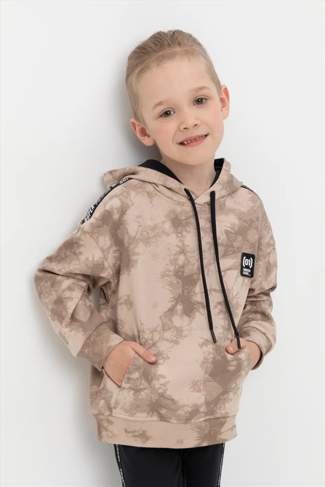 Толстовка с капюшоном для мальчика из петельчатого футера диагональ. Манжеты и пояс выполнены из эластичного полотна. Спереди удобный карман-кенгуру. Набивка выполнена из стойких текстильных красителей.