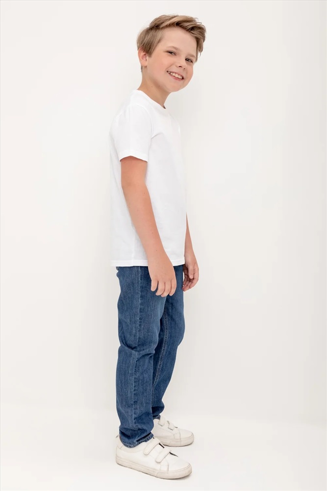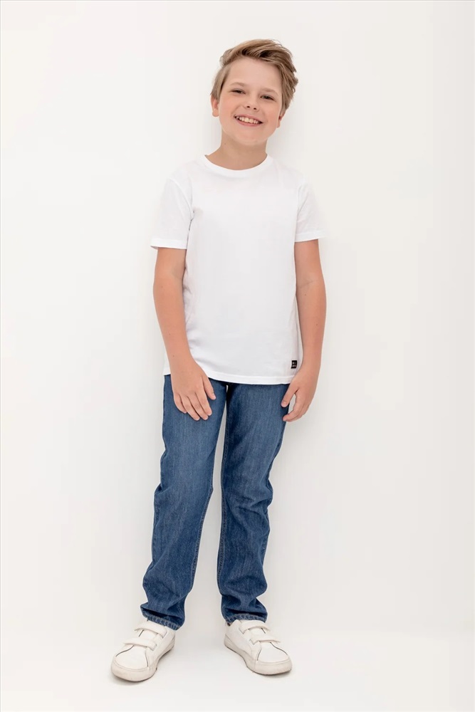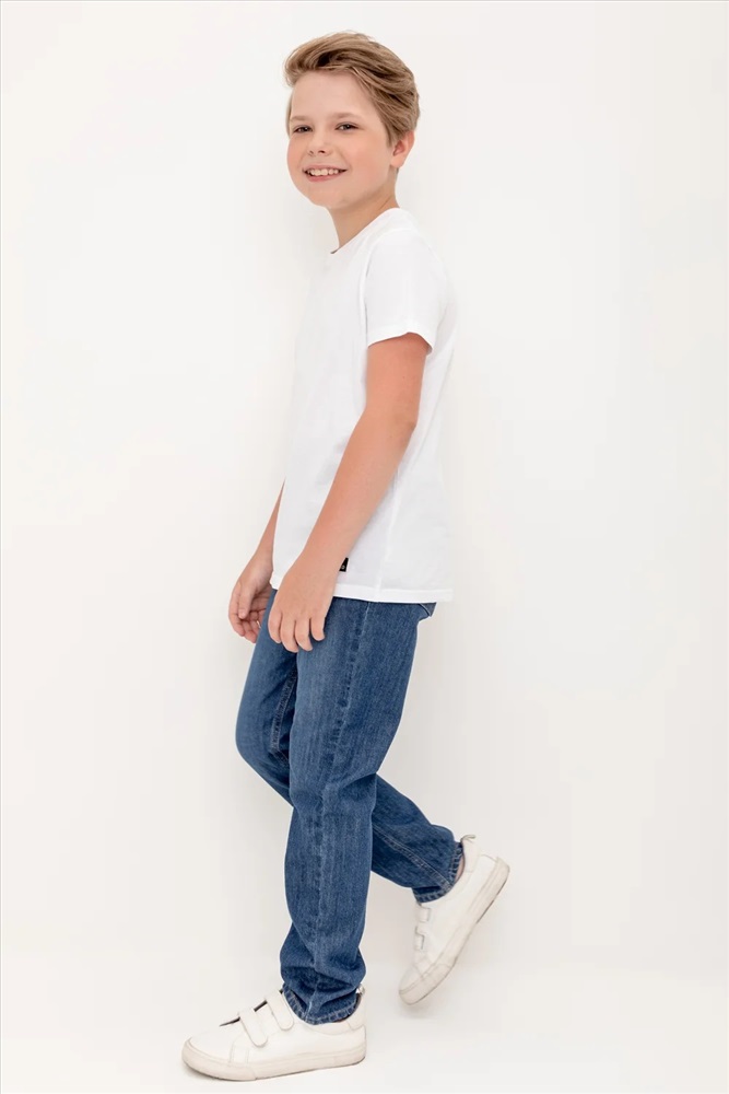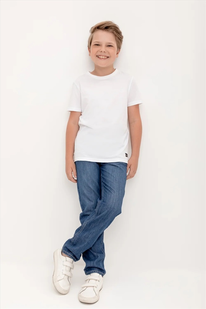 Классические прямые джинсы с потертостями. Застёгиваются на молнию в размерах 110-152. Застежка на крючок без молнии в размере 104. Предусмотрены шлёвки, в которые можно вставить ремень. Впереди и сзади карманы.