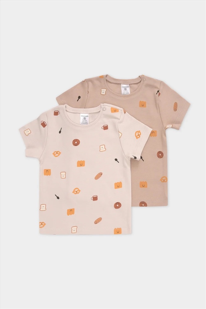 Футболки для мальчика в упаковке 2 шт из высококачественного трикотажного полотна. Оригинальная набивка выполнена из стойких гипоаллергенных текстильных красителей. Для удобства на плече застежка на кнопки.