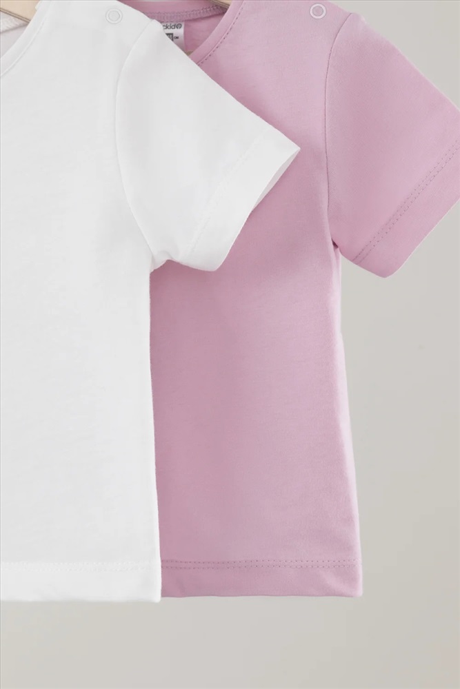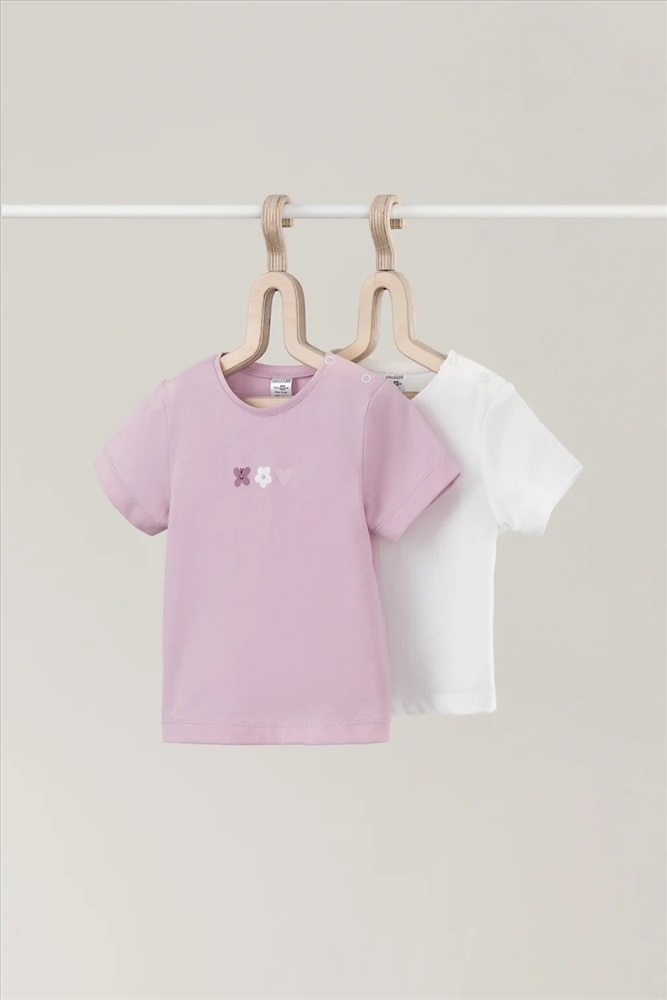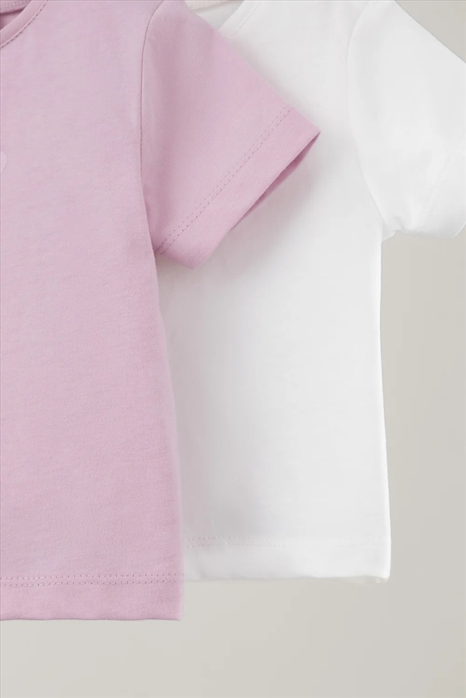 Футболки для девочки из высококачественного трикотажа супрем, произведённого из натурального хлопка. В упаковке 2 штуки. Для удобства на плече застёжка на кнопки. Все трикотажные полотна производятся в соответствии с нормами Швейцарского сертификата ЭкоТекс.