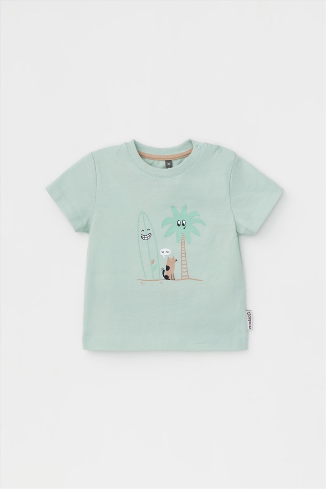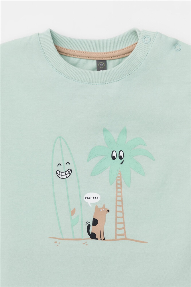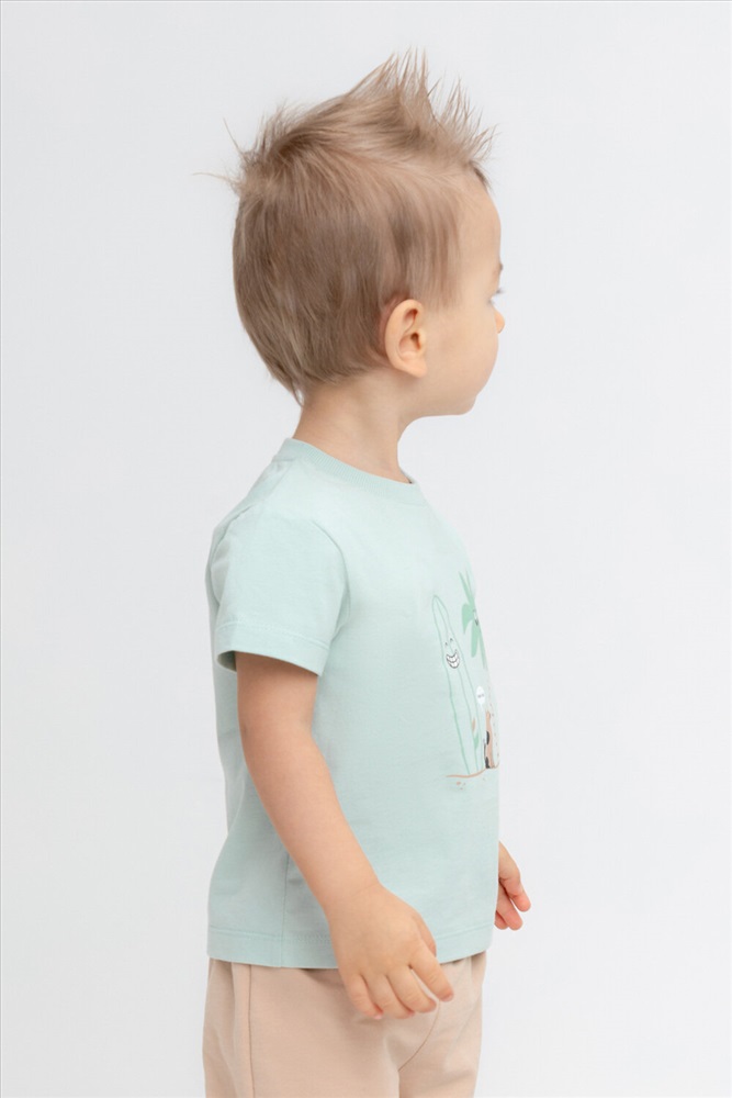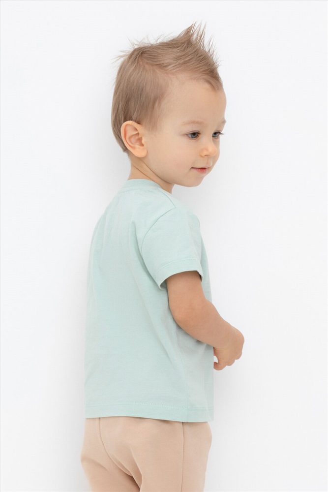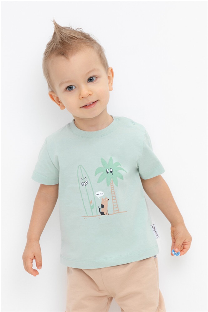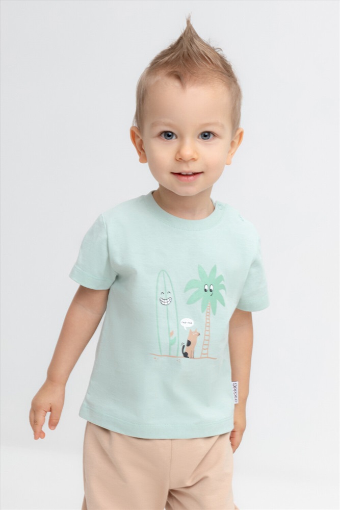 Футболка для мальчика с принтом из высококачественного трикотажного полотна. Оригинальный принт выполнен из стойких текстильных красителей. Для удобства на плече застежка на кнопки.