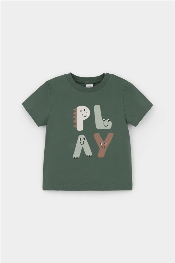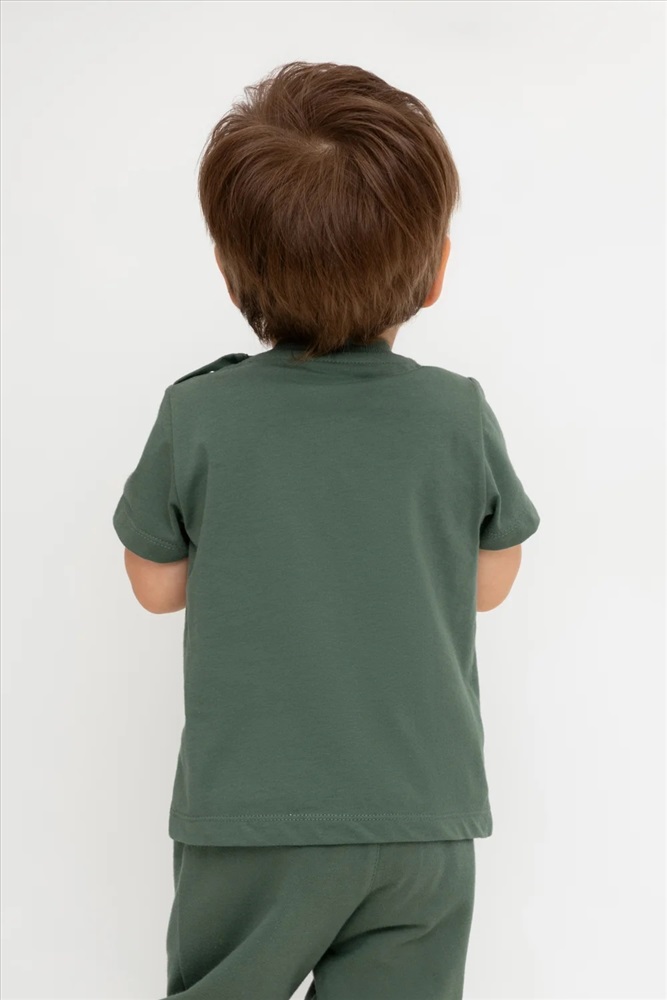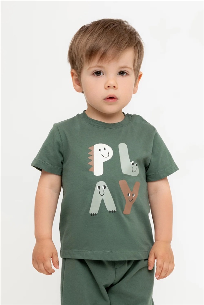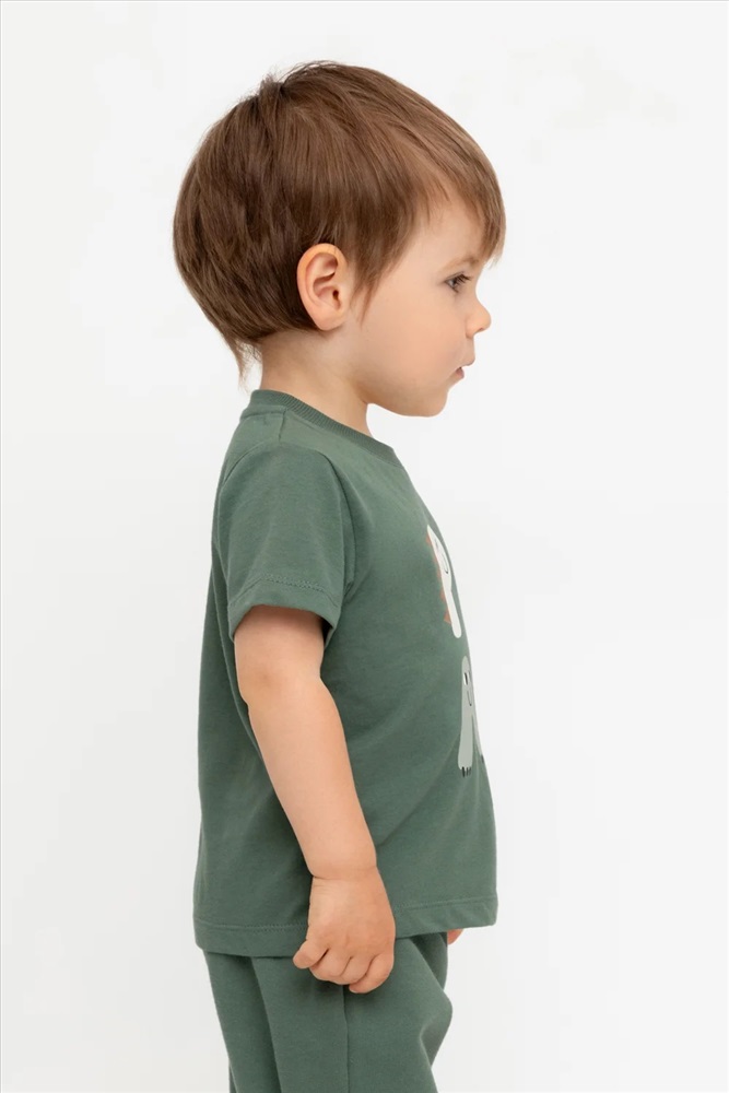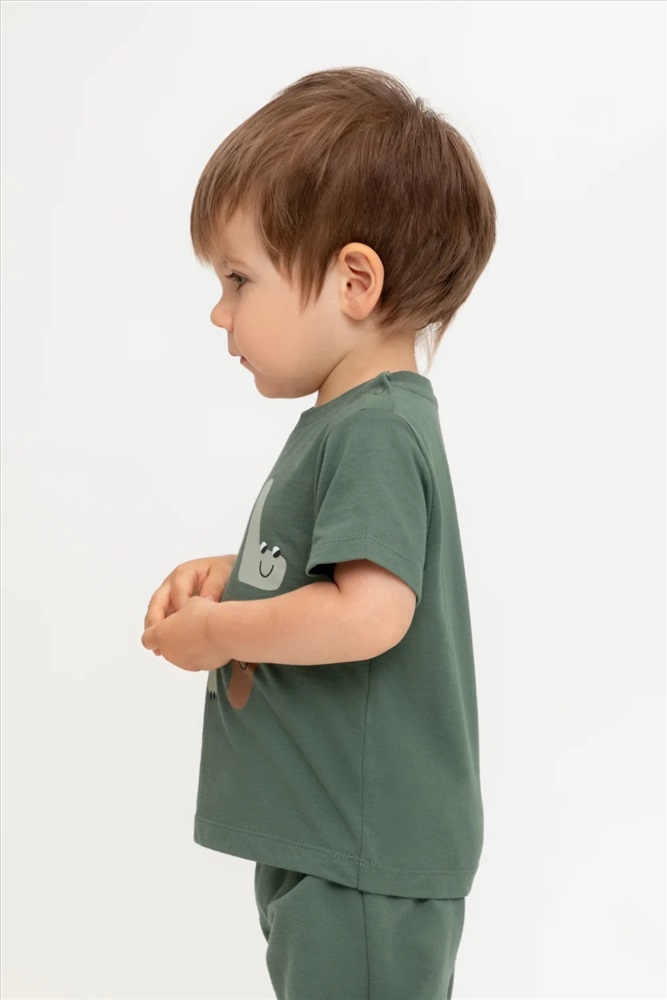Футболка для мальчика с принтом из высококачественного трикотажного полотна. Для удобства на плече застежка на кнопки