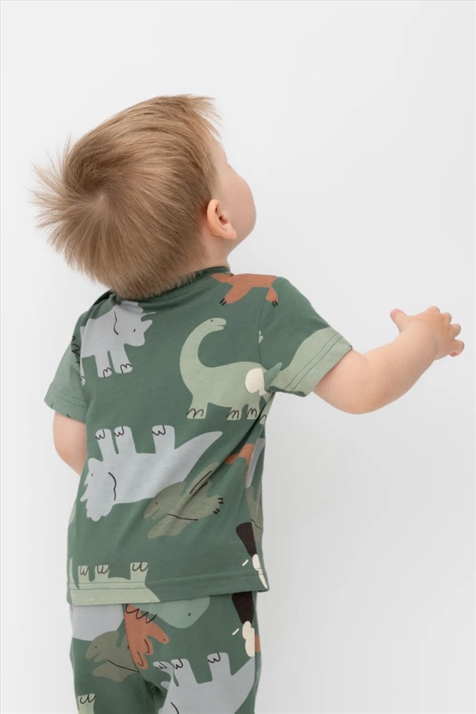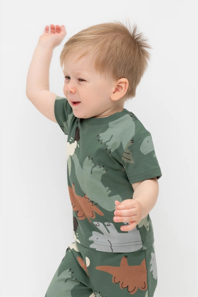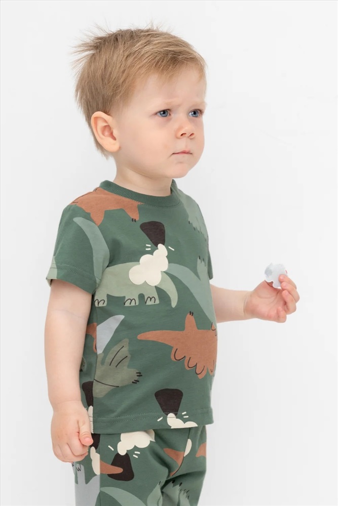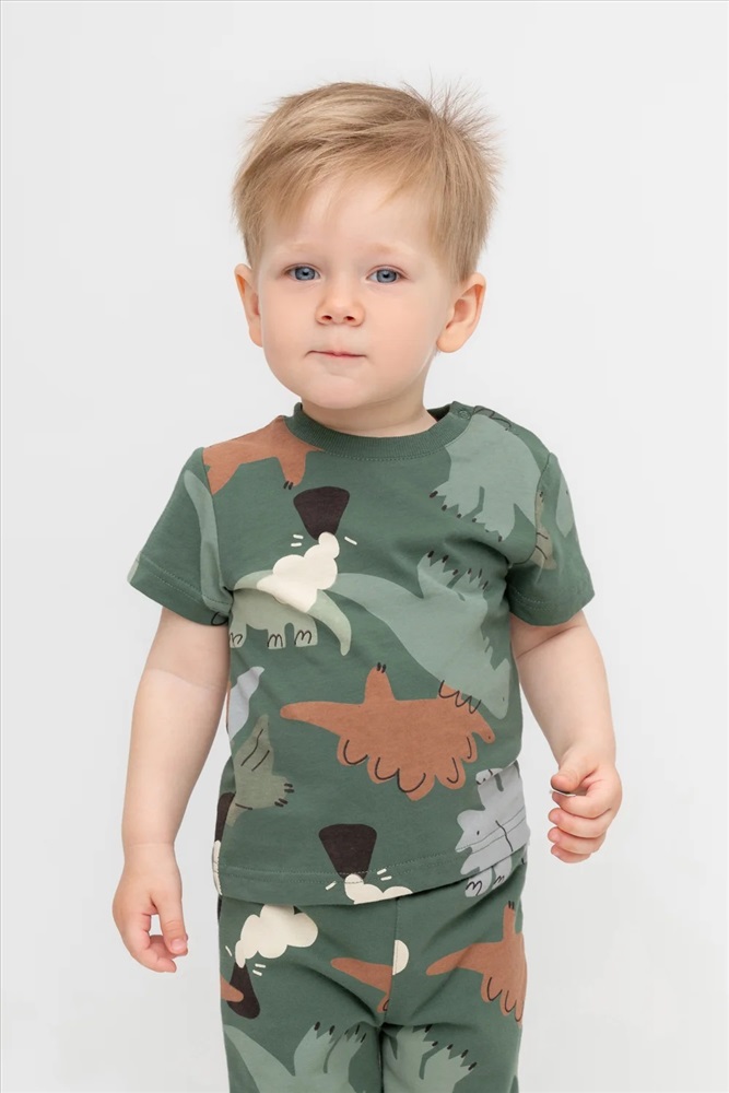 Футболка для мальчика из высококачественного трикотажного полотна. Оригинальная набивка выполнена из стойких текстильных красителей.Для удобства на плече застежка на кнопки