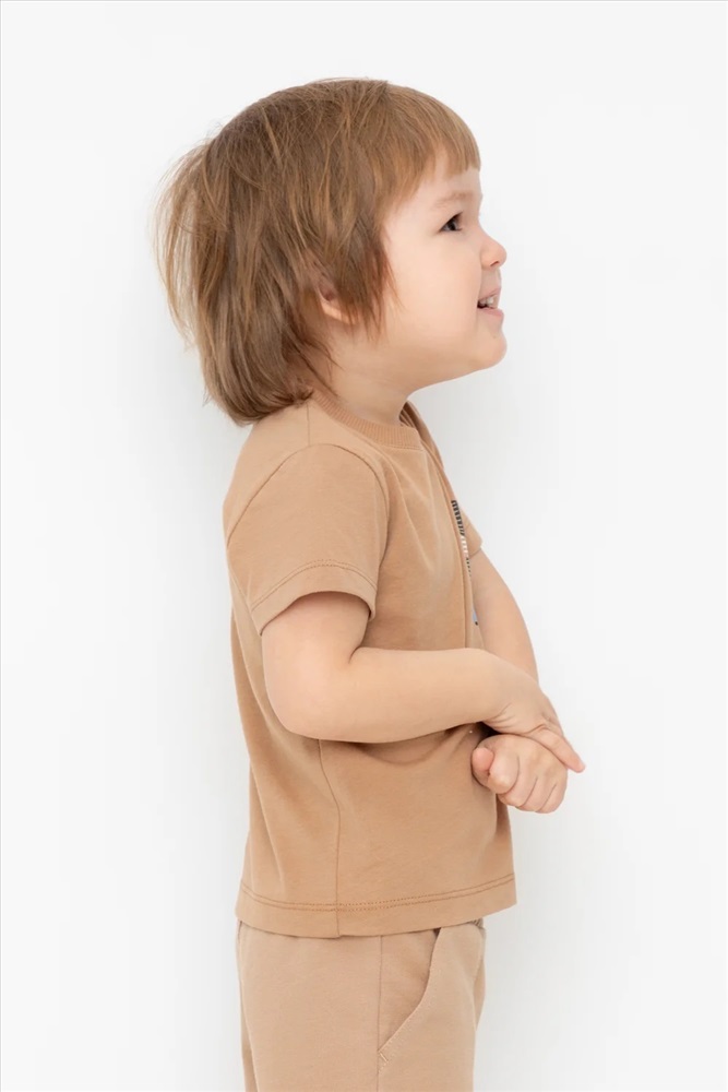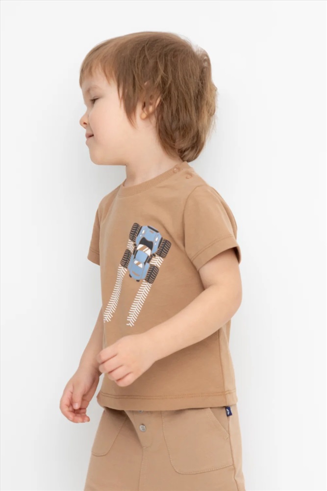 Футболка для мальчика с принтом из высококачественного трикотажного полотна. Оригинальный принт выполнен из стойких текстильных красителей.