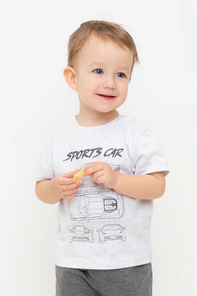 Футболка для мальчика с принтом из высококачественного трикотажного полотна. Для удобства на плече застежка на кнопки