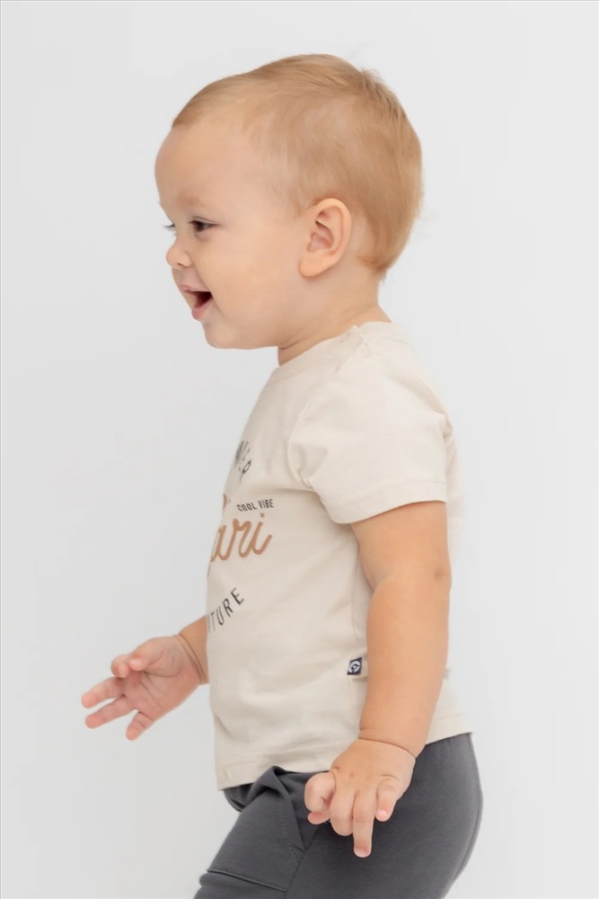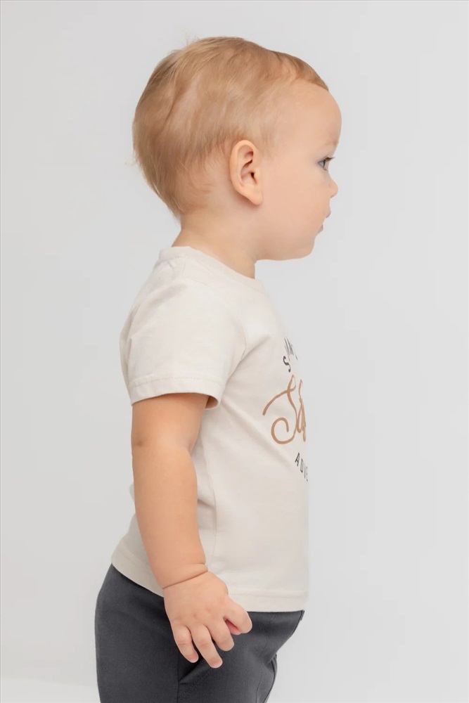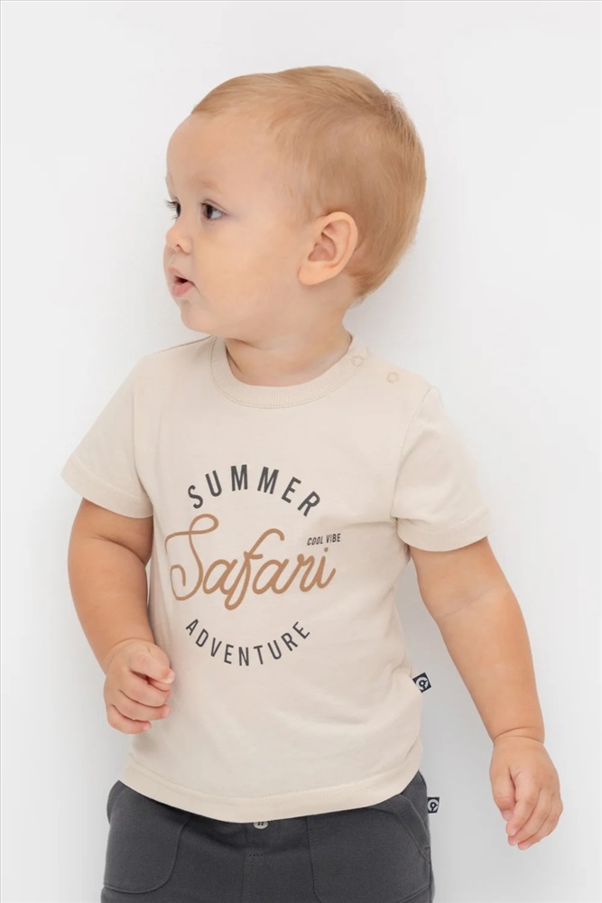 Футболка для мальчика из высококачественного трикотажного полотна. Оригинальная набивка выполнена из стойких текстильных красителей. Для удобства на плече застежка на кнопки.
