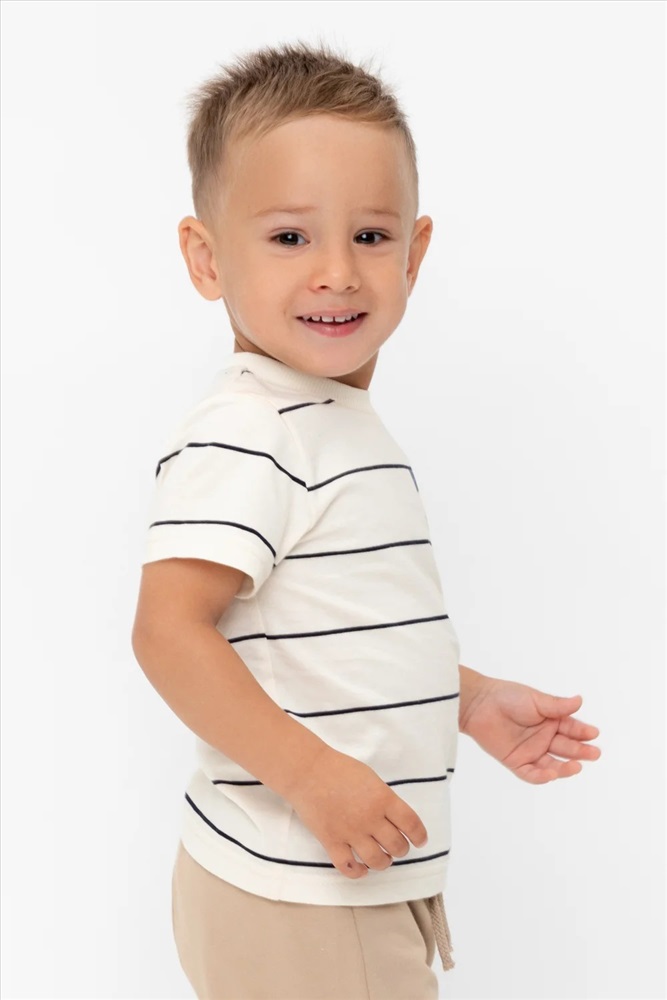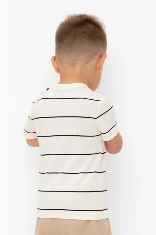 Футболка для мальчика из высококачественного трикотажного полотна. Оригинальная набивка и принт выполнены из стойких текстильных гипоаллергенных красителей. Для удобства на плече есть застежка на кнопки.