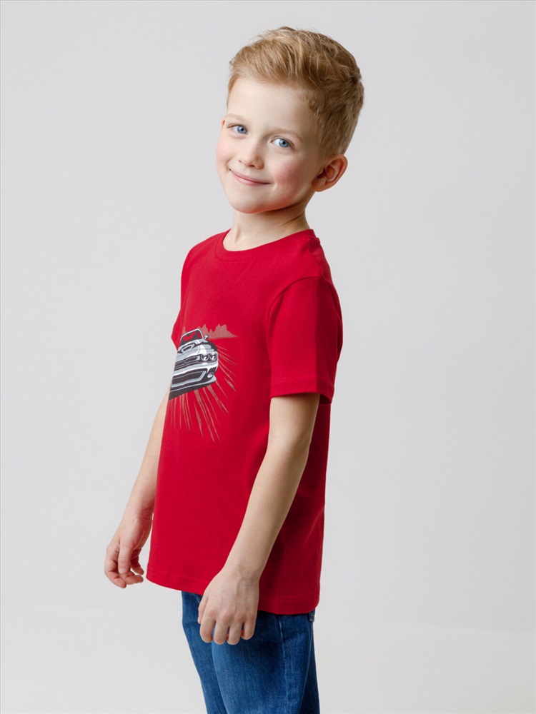 Трикотажная футболка для мальчика из натурального хлопка. Оригинальный принт выполнен из стойких текстильных гипоаллергенных красителей. Изделие сохраняет цвет и форму после многократных стирок.