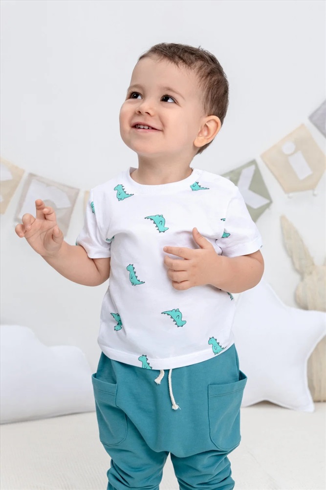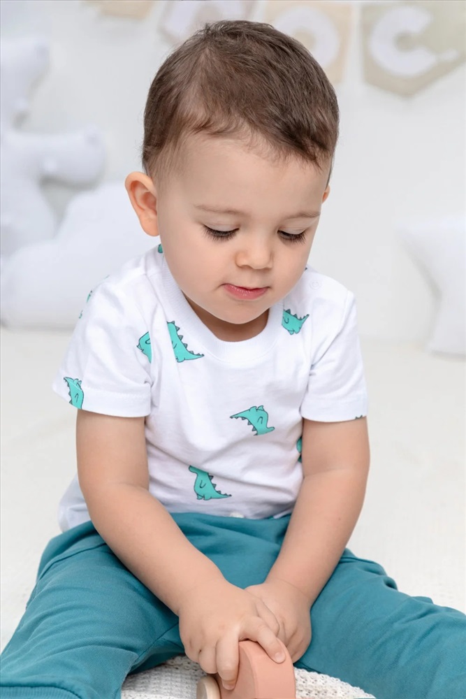 Футболка для мальчика из высококачественного трикотажного полотна. Оригинальная набивка выполнена из стойких текстильных гипоаллергенных красителей. Для удобства на плече застежка на кнопки.