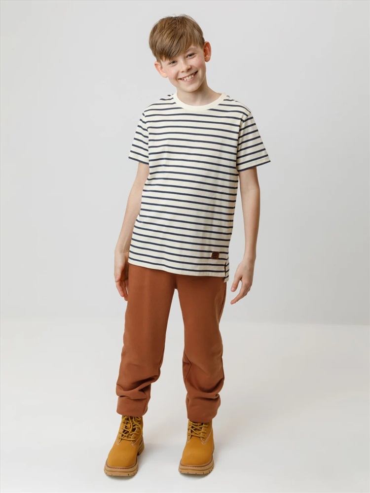 Футболка для мальчика из гладкого трикотажа, произведённого из высококачественного натурального хлопка. По бокам разрезы. Изделие сохраняет цвет и форму после многократных стирок. Все трикотажные полотна производятся в соответствии с нормами швейцарского сертификата ЭкоТекс.