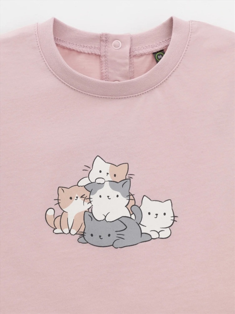 Футболка для девочки из гладкого трикотажа, произведённого из высококачественного натурального хлопка. Застёгивается на спинке на планку с кнопками. Оригинальный принт выполнен из стойких текстильных гипоаллергенных красителей. Изделие сохраняет цвет и форму после многократных стирок. Все трикотажные полотна производятся в соответствии с нормами швейцарского сертификата ЭкоТекс.