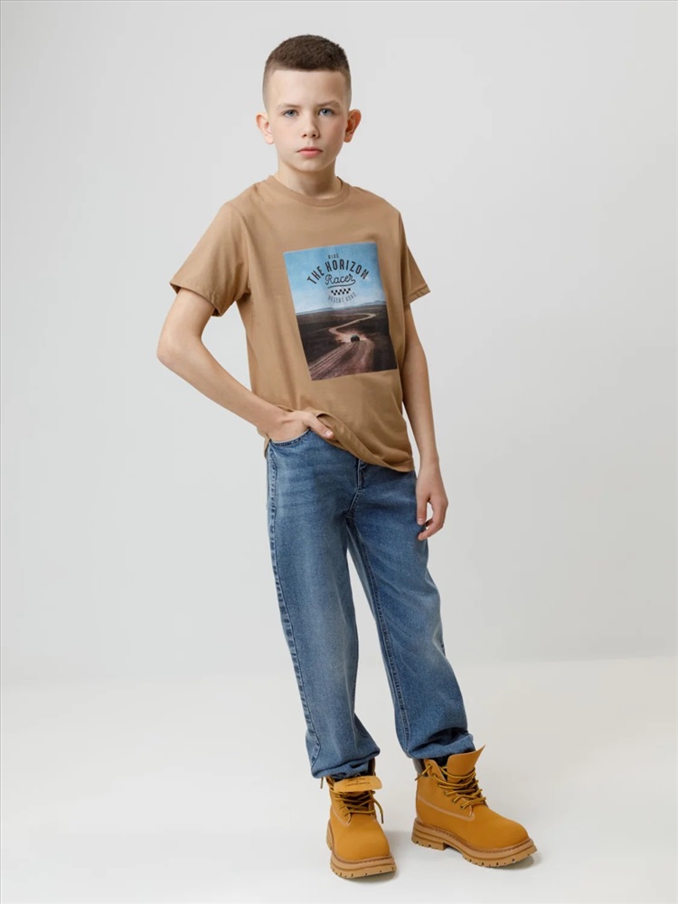 Футболка для мальчика из гладкого трикотажа, произведённого из высококачественного натурального хлопка. Оригинальный принт выполнен из стойких текстильных гипоаллергенных красителей. Изделие сохраняет цвет и форму после многократных стирок. Все трикотажные полотна производятся в соответствии с нормами швейцарского сертификата ЭкоТекс.