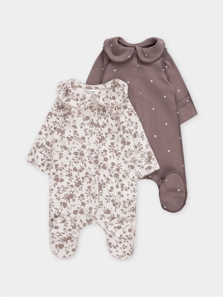 Комбинезоны для новорождённых из мягкого эластичного трикотажа, произведённого из натурального хлопка. В упаковке 2 штуки. Застёгиваются спереди на кнопки. В размере 56 на рукавах предусмотрены антицарапки, швы выполнены наружу. Украшены воротничком. Оригинальная набивка выполнена из стойких гипоаллергенных текстильных красителей. Все трикотажные полотна производятся в соответствии с нормами швейцарского сертификата ЭкоТекс.