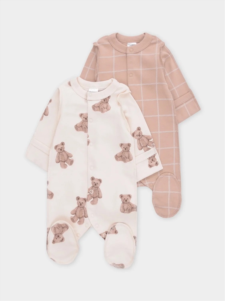 Комбинезоны для новорождённых из мягкого эластичного трикотажа, произведённого из натурального хлопка. В упаковке 2 штуки. Застёгиваются спереди на кнопки. В размере 56 на рукавах предусмотрены антицарапки, швы выполнены наружу. Оригинальная набивка выполнена из стойких гипоаллергенных текстильных красителей. Все трикотажные полотна производятся в соответствии с нормами швейцарского сертификата ЭкоТекс.