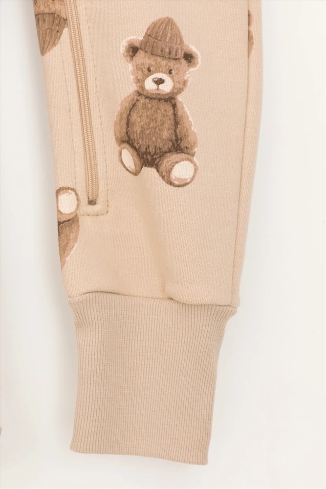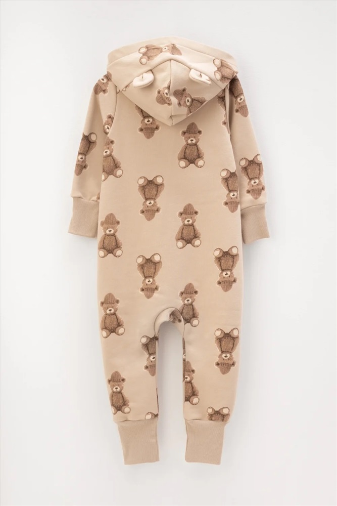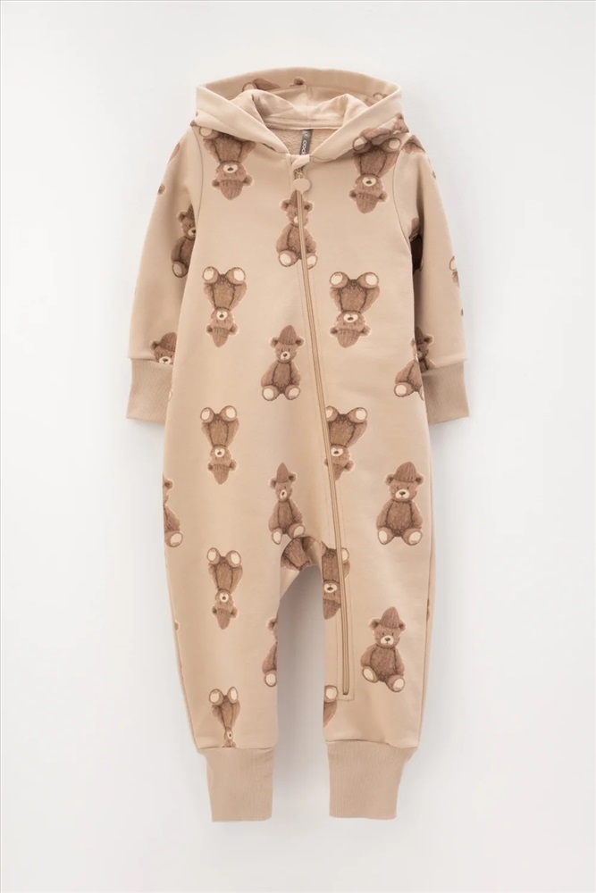 Комбинезон детский из петельчатого футера. В составе 80% натурального хлопка и 20% полиэстера, при этом полиэстер ввязан внутрь по особой технологии и не соприкасается с кожей. Манжеты выполнены их эластичного трикотажа в рубчик. Застёжка на витую нейлоновую молнию с защитой шеи и подбородка.