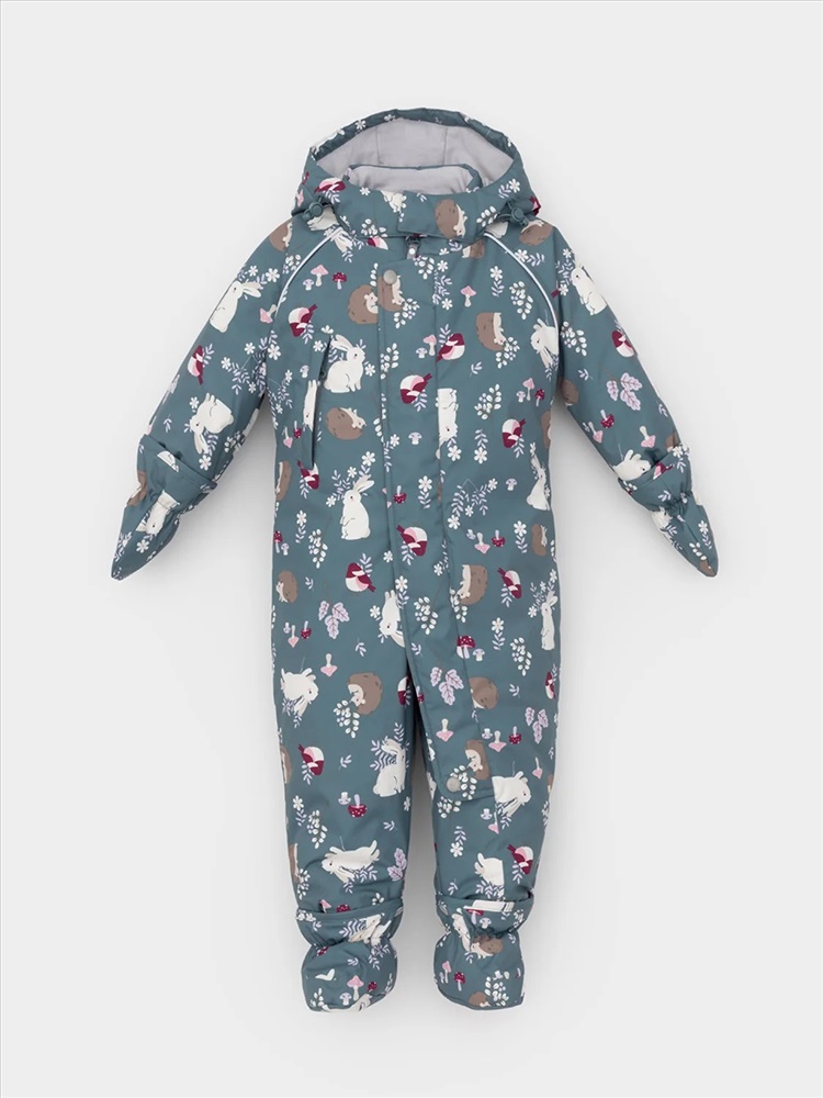 Зимний комбинезон ясельный с утеплителем SEE®: 250 г/м2. Выполнен из мембранной ткани с дополнительной тефлоновой обработкой, которая предохраняет изделие от загрязнений и отталкивает влагу. Подклад выполнен из 100% хлопка. Комбинезон застёгивается на молнию и внешнюю планку на липучках, предусмотрена защита подбородка. Несъёмный капюшон имеет эластичную утяжку со стопперами. Резинка по спинке для лучшего прилегания. На груди карман на молнии. По рукавам и низу изделия эластичные манжеты, на ножках отстёгивающиеся силиконовые штрипки. В размерах 74-80 и 80-86 в комплекте идут рукавицы и пинетки. Во всех изделиях верхнего ассортимента для безопасности ребёнка предусмотрены светоотражающие элементы.