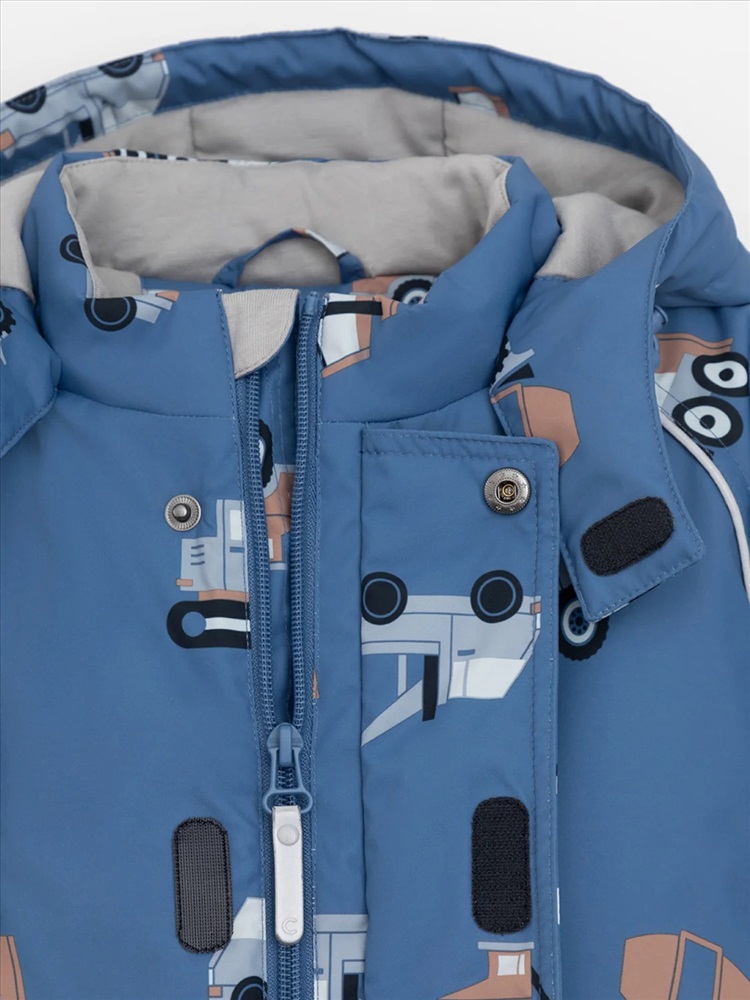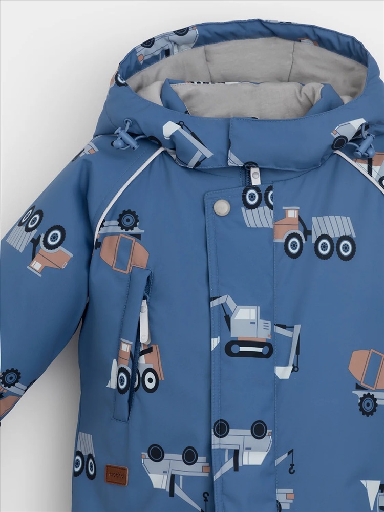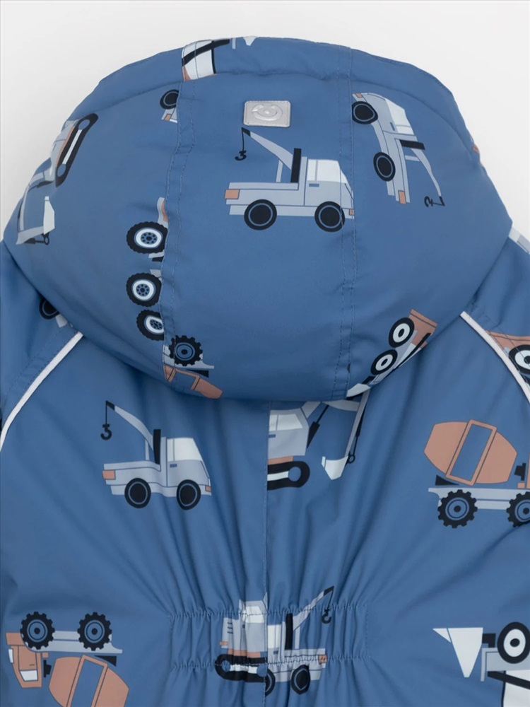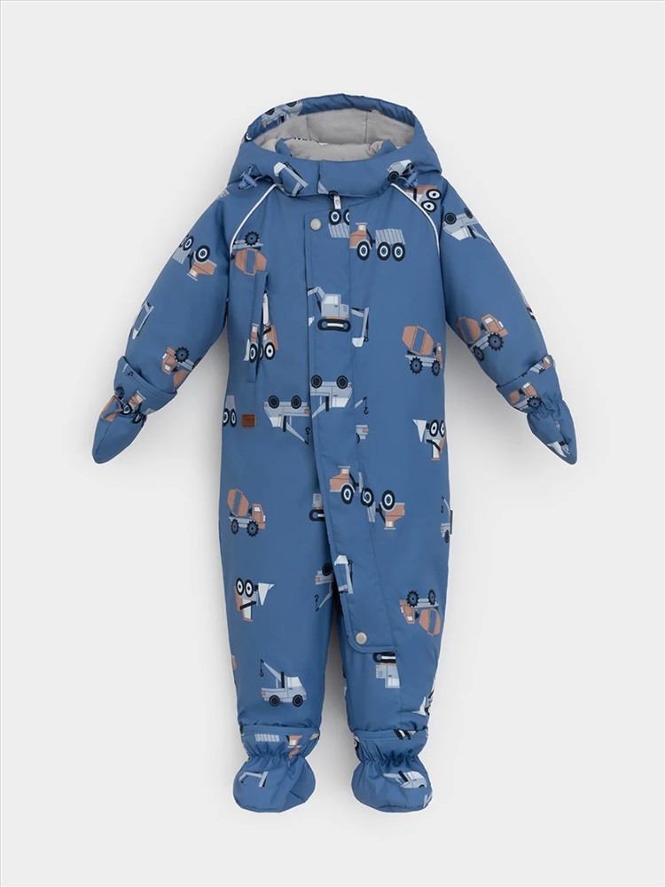 Зимний комбинезон ясельный с утеплителем SEE®: 250 г/м2. Выполнен из мембранной ткани с дополнительной тефлоновой обработкой, которая предохраняет изделие от загрязнений и отталкивает влагу. Подклад выполнен из 100% хлопка. Комбинезон застёгивается на молнию и внешнюю планку на липучках, предусмотрена защита подбородка. Несъёмный капюшон имеет эластичную утяжку со стопперами. Резинка по спинке для лучшего прилегания. На груди карман на молнии. По рукавам и низу изделия эластичные манжеты, на ножках отстёгивающиеся силиконовые штрипки. В размерах 74-80 и 80-86 в комплекте идут рукавицы и пинетки. Во всех изделиях верхнего ассортимента для безопасности ребёнка предусмотрены светоотражающие элементы.