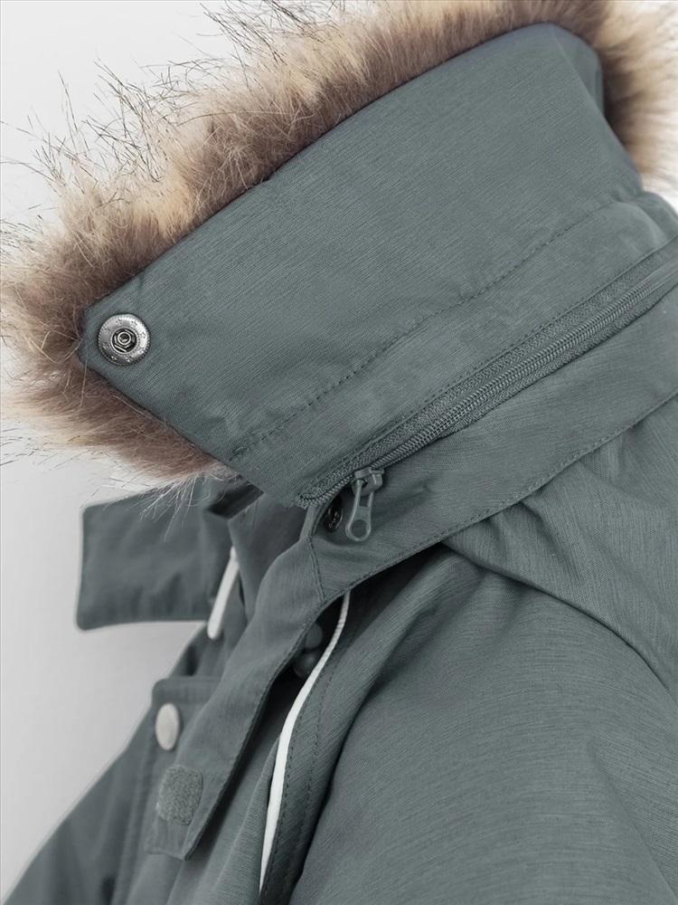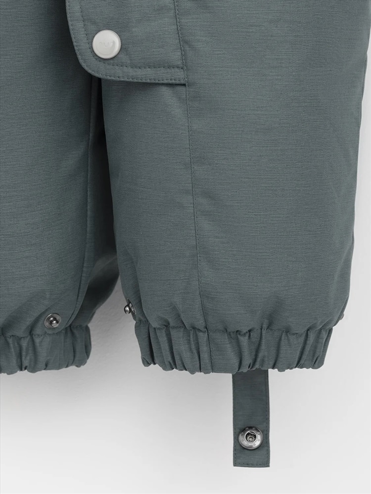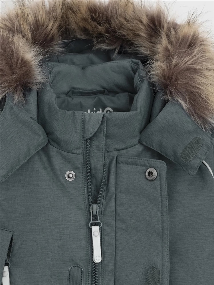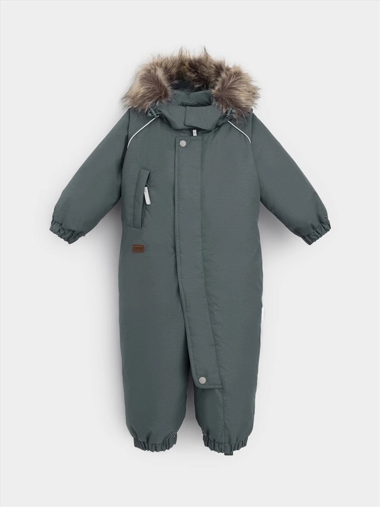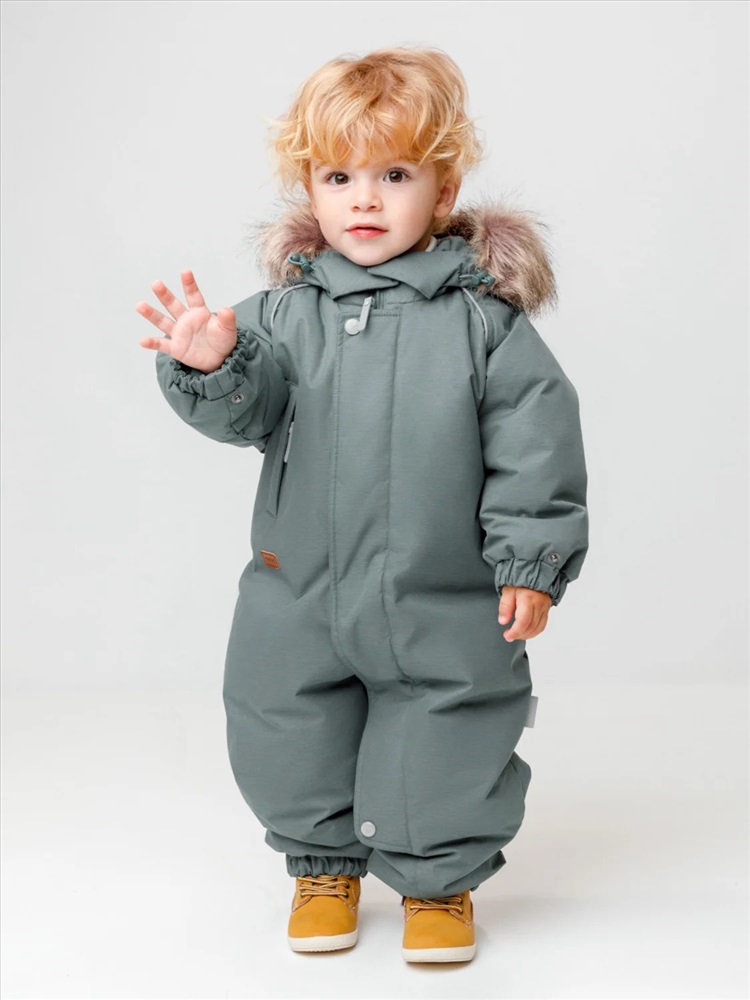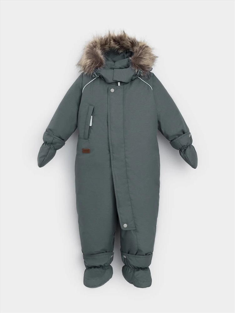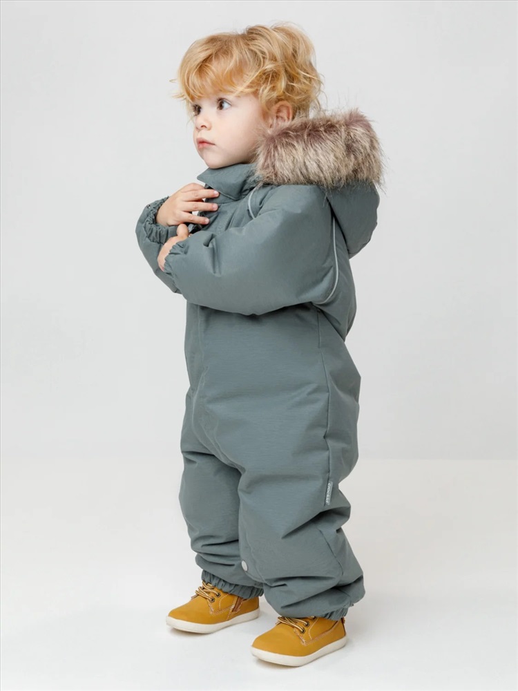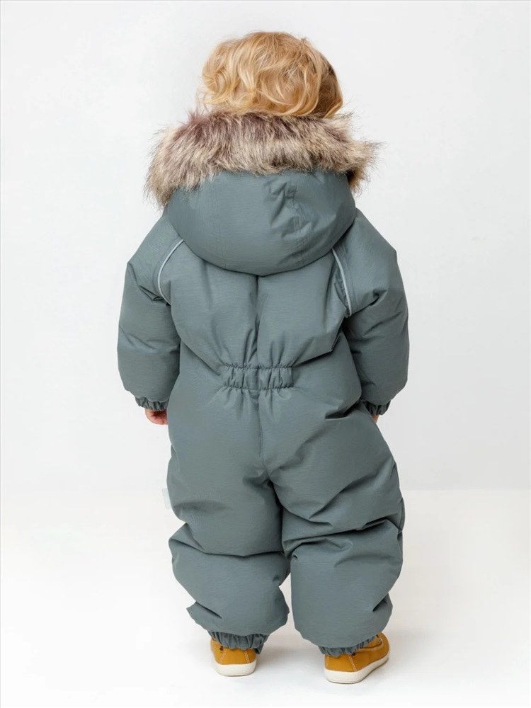 Зимний комбинезон ясельный с натуральным утеплителем из гусиного пуха (70%) и пера (30%). Выполнен из мембранной ткани с дополнительной тефлоновой обработкой, которая предохраняет изделие от загрязнений и отталкивает влагу. Подклад выполнен из 100% хлопка. Комбинезон застёгивается на молнию и внешнюю планку на липучках, предусмотрена защита подбородка. Несъёмный капюшон имеет эластичную утяжку со стопперами и отстёгивающийся мех на молнии. Резинка по спинке для лучшего прилегания. На груди карман на молнии. По рукавам и низу изделия эластичные манжеты, на ножках отстёгивающиеся силиконовые штрипки. В размерах с 68-74 по 80-86 в комплекте идут рукавицы и пинетки. Во всех изделиях верхнего ассортимента для безопасности ребёнка предусмотрены светоотражающие элементы.