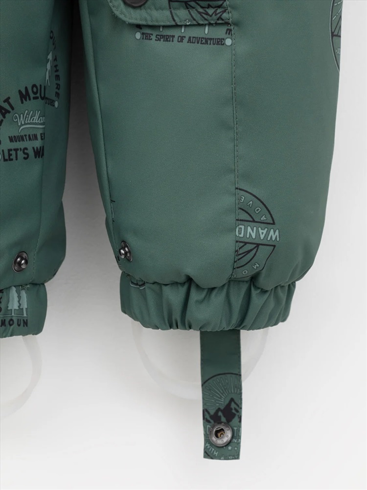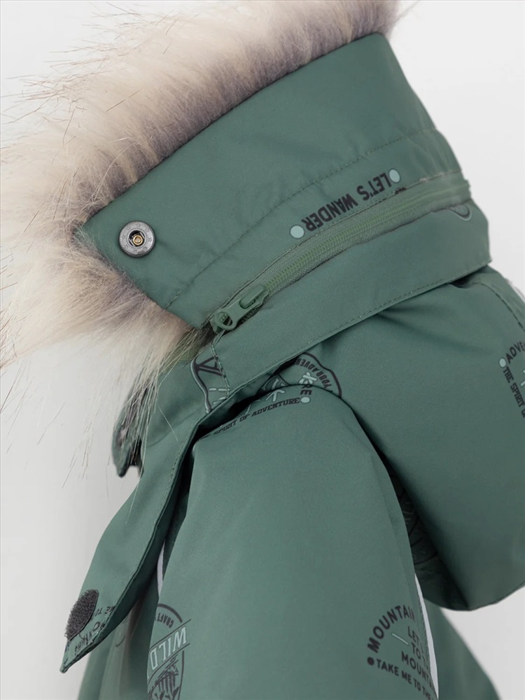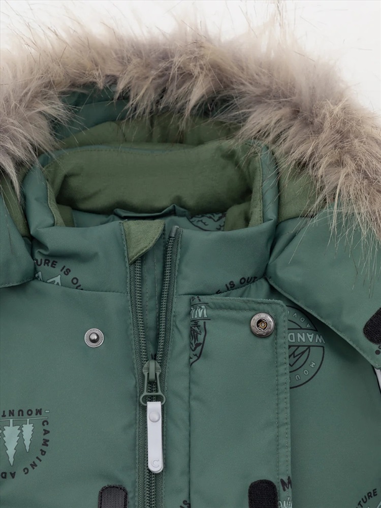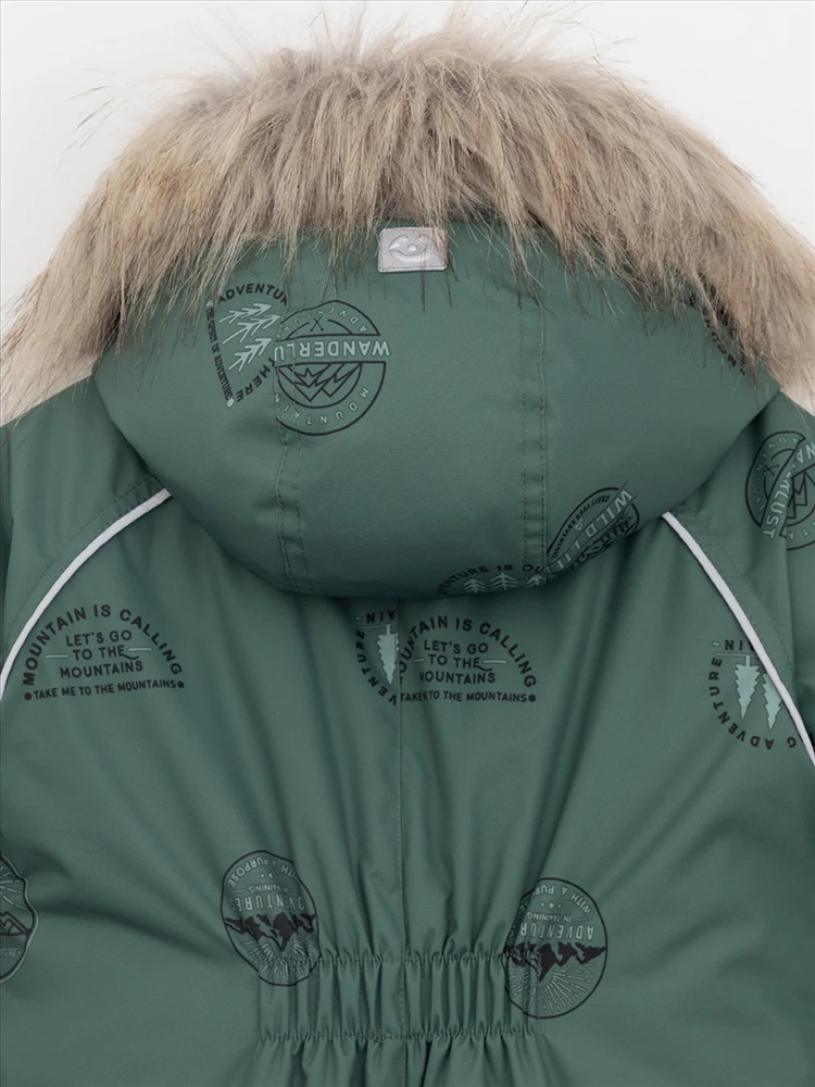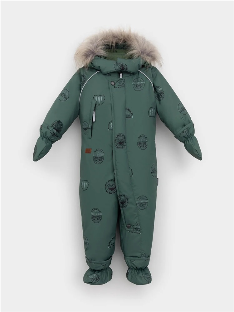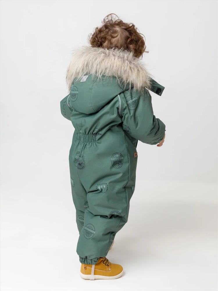 Зимний комбинезон ясельный с утеплителем Fellex®: 300 г/м2. Выполнен из мембранной ткани с дополнительной тефлоновой обработкой, которая предохраняет изделие от загрязнений и отталкивает влагу. Подклад выполнен из 100% хлопка. Комбинезон застёгивается на молнию и внешнюю планку на липучках, предусмотрена защита подбородка. Несъёмный капюшон имеет эластичную утяжку со стопперами и отстёгивающийся мех на молнии. Резинка по спинке для лучшего прилегания. На груди карман на молнии. По рукавам и низу изделия эластичные манжеты, на ножках отстёгивающиеся силиконовые штрипки. В размерах 74-80 и 80-86 в комплекте идут рукавицы и пинетки. Во всех изделиях верхнего ассортимента для безопасности ребёнка предусмотрены светоотражающие элементы.