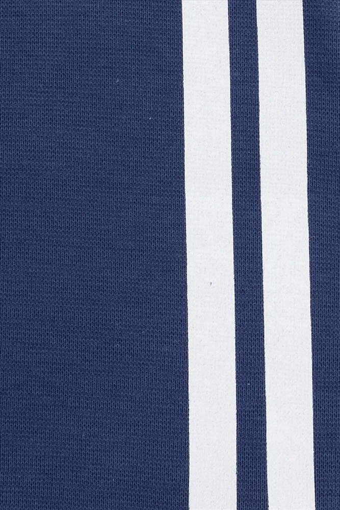 Комплект для мальчика - шапка и снуд из трикотажа рибана с эластаном. Шапка с удлинённой скругленной макушкой. Снуд сплошной. Украшены принтом со спортивными полосками.