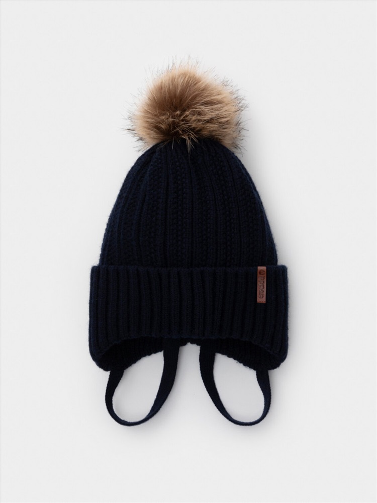 Комплект для мальчика: шапка и манишка из полушерстяной пряжи. Шапка на завязках с синтепоновым утеплителем. Подклад из натурального хлопка. Полностью закрывает голову, уши и шею, защищая ребёнка от холодного воздуха и ветра. На макушке помпон. Манишка с высоким воротником с эластичным отворотом.