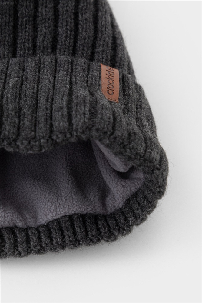 Комплект зимний детский: шапка и снуд из полушерсти. Тёплая вязаная шапка с отворотом на подкладе из флиса. Украшена нашивкой из искусственной кожи. Узкий снуд без оборотов вокруг шеи. Изделие сохраняет форму и стойкий цвет после многочисленных стирок.