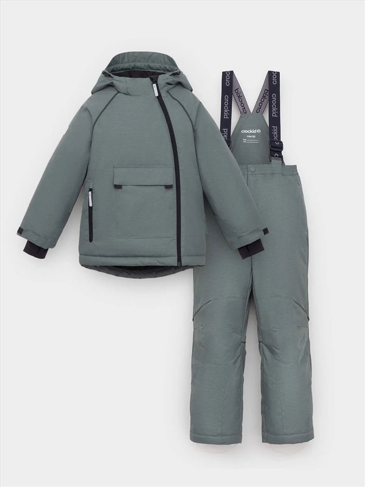 Производитель: CROCKID; Российский размер: 104, 110; Рост: 104-110; Возраст: 4; Обхват груди: 56; Обхват талии: 52; Артикул поставщика: ВК 20068/2 ГР; Состав: верх- 80% полиэстер, 20% полиуретан, подклад- 100% полиэстер, Утеплитель- 100% полиэстер; Сезон: Осень, Зима; Год: 2025; Страна: Россия Зимний комплект для мальчика с утеплителем Fellex®. Куртка: 250г/м2. Брюки: 120г/м2. Выполнен из мембранной ткани с дополнительной тефлоновой обработкой, которая предохраняет изделие от загрязнений и отталкивает влагу. Подклад выполнен из 100%полиэстера Tricot. Куртка застёгивается на молнию, предусмотрена защита подбородка. Несъёмный капюшон имеет эластичную утяжку со стопперами. На рукавах внутренние эластичные манжеты, ширина регулируется липучками. Накладной карман с клапаном и один карман на молнии. Эластичный пояс на брюках застёгиваются на молнию и кнопку. Подтяжки регулируются по длине. Анатомический крой в области коленей. Карманы в боковых швах. Низ регулируется под ширину обуви и фиксируется на ноге при помощи липучек. Внутренняя противоснежная юбка и отстёгивающиеся штрипки защищают обувь от попадания снега и удерживают брюки в закреплённом положении. Во всех изделиях верхнего ассортимента для безопасности ребёнка предусмотрены светоотражающие элементы.