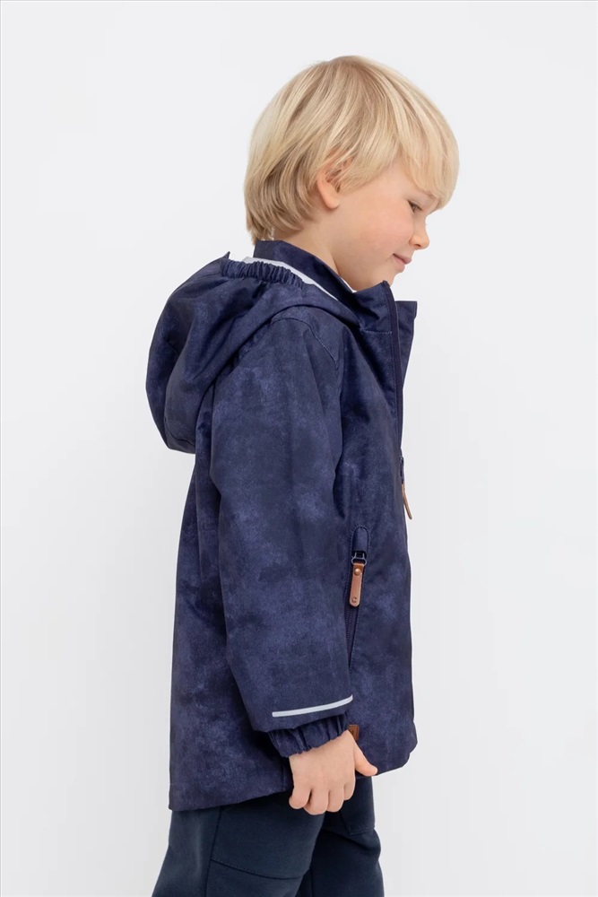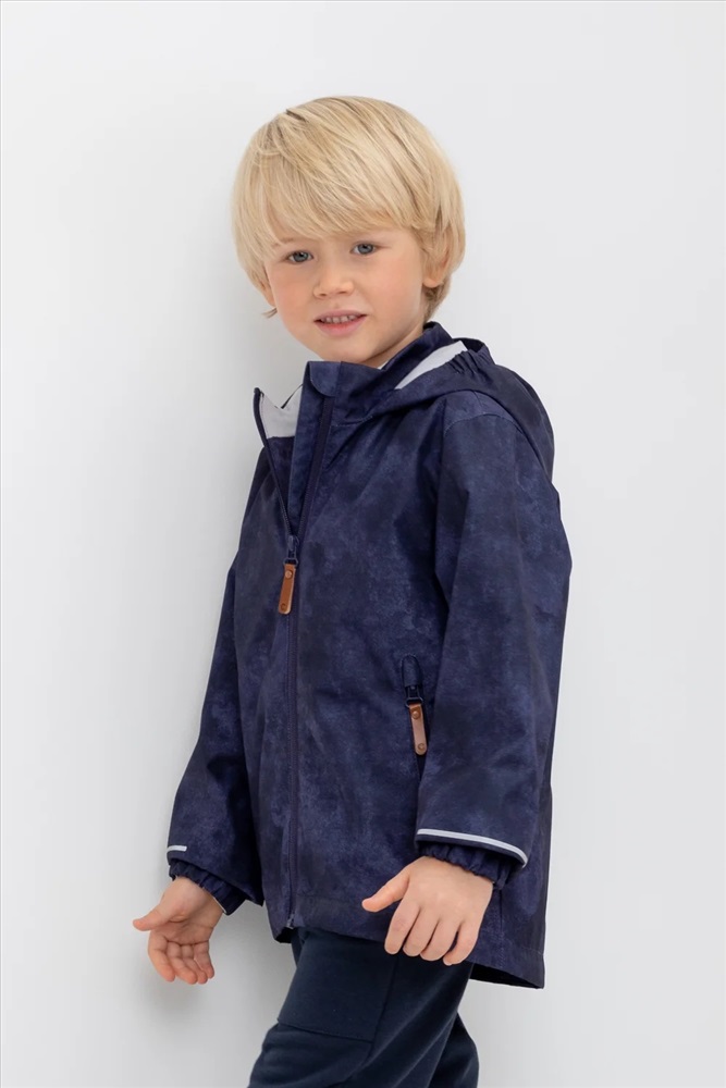 Ветровка для мальчика из мембранной ткани с дополнительной тефлоновой обработкой. Верхняя мембранная ткань 1000/1000 с тефлоновым покрытием отталкивает воду и грязь и обладает «дышащими» свойствами. Подкладка выполнена из 100% полиэстера. У изделия предусмотрена защита подбородка. Несъемный капюшон регулируется с помощью эластичного шнура со стопперами. Низ рукавов имеет эластичную резинку для лучшего прилегания. Во всех изделиях верхнего ассортимента для безопасности ребенка предусмотрены светоотражающие элементы