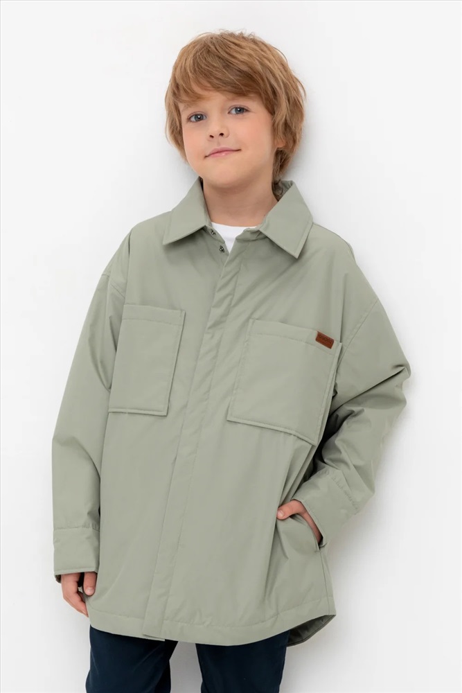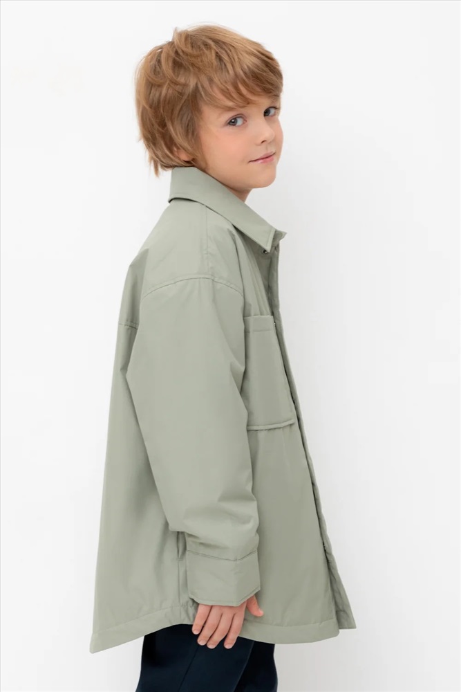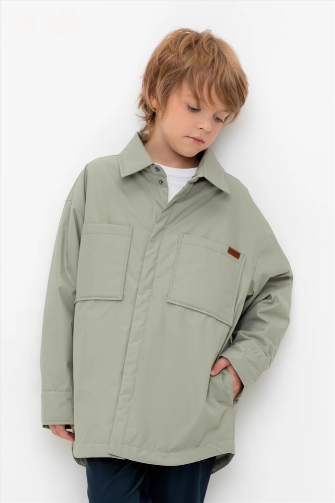 Куртка-рубашка для мальчика с утеплителем SEE®: 60 г/м2. Выполнена из мембранной ткани с дополнительной тефлоновой обработкой. Данный вид обработки предохраняет изделие от загрязнения и лучше отводит влагу. Подклад из 100% полиэстера. Спереди застёгивается на потайные кнопки. На груди два накладных кармана. Во всех изделиях верхнего ассортимента для безопасности ребенка предусмотрены светоотражающие элементы.