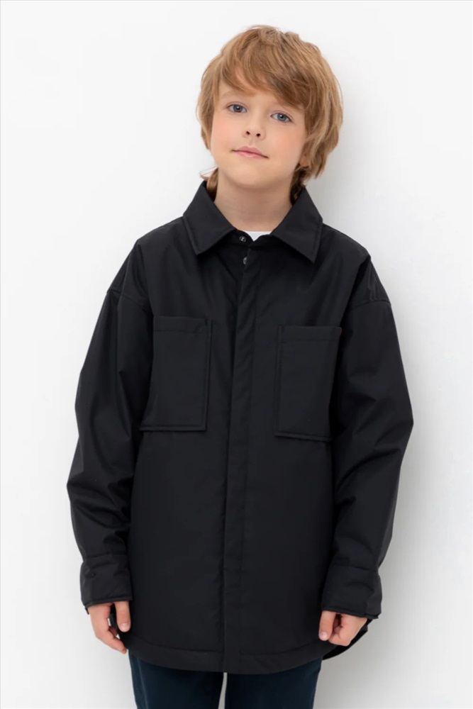 Куртка-рубашка для мальчика с утеплителем SEE®: 60 г/м2. Выполнена из мембранной ткани с дополнительной тефлоновой обработкой. Данный вид обработки предохраняет изделие от загрязнения и лучше отводит влагу. Подклад из 100% полиэстера. Спереди застёгивается на потайные кнопки. На груди два накладных кармана. Во всех изделиях верхнего ассортимента для безопасности ребенка предусмотрены светоотражающие элементы.