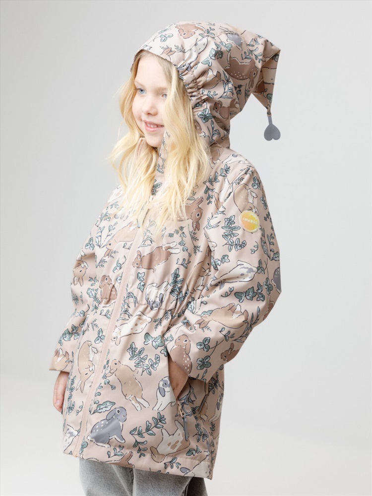 Ветровка для девочки из мембранной ткани с дополнительной тефлоновой обработкой. Верхняя мембранная ткань 1000/1000 с тефлоновым покрытием отталкивает воду и грязь и обладает «дышащими» свойствами. Подкладка выполнена из флиса, 100% полиэстер. У изделия предусмотрена защита подбородка. Несъемный капюшон регулируется с помощью эластичного шнура со стопперами. Низ рукавов и пояс изделия имеют эластичные резинки для лучшего прилегания. Во всех изделиях верхнего ассортимента для безопасности ребенка предусмотрены светоотражающие элементы.