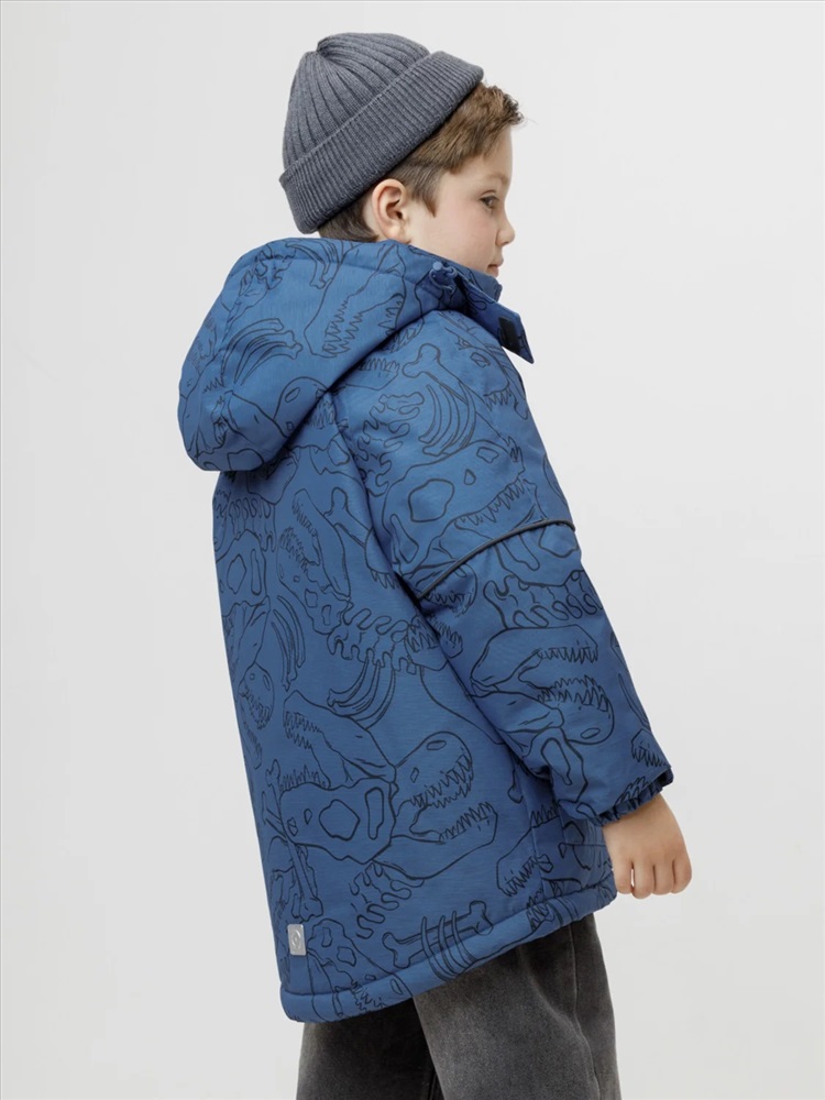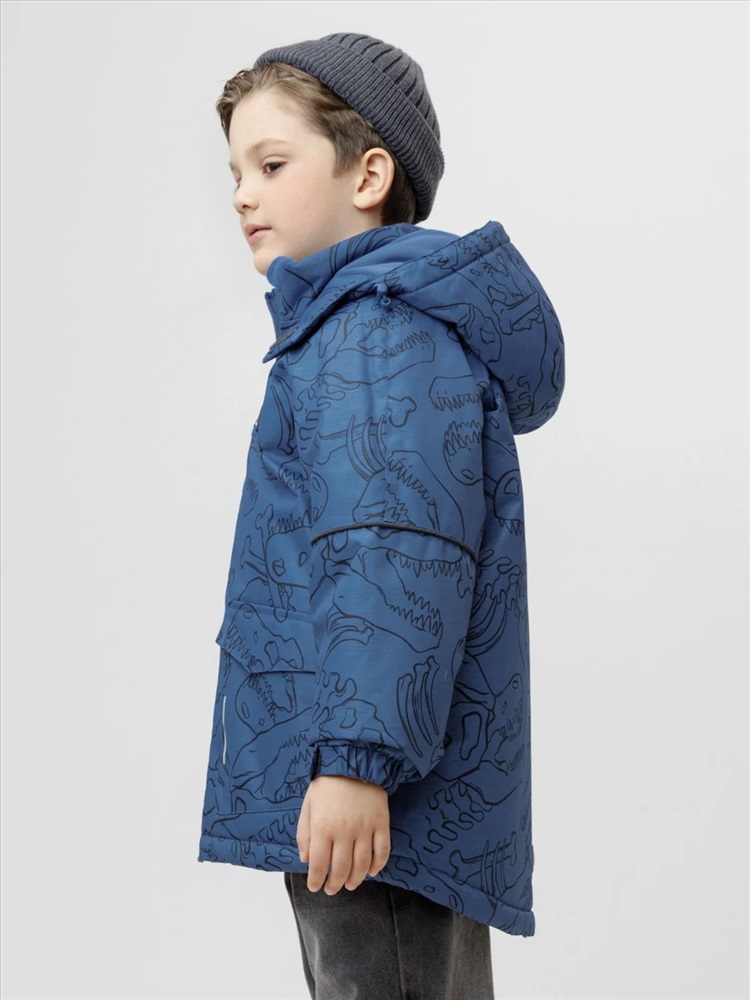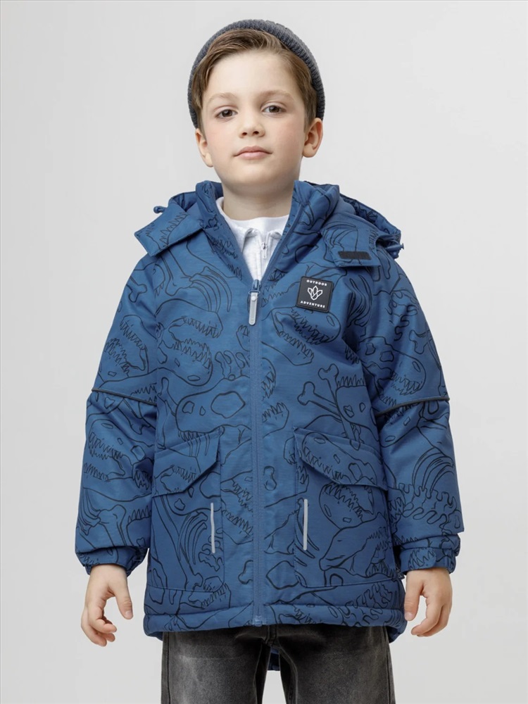 Зимняя куртка для мальчика с утеплителем Fellex®: 250 г/м2. Выполнена из мембранной ткани с дополнительной тефлоновой обработкой, которая предохраняет изделие от загрязнений и отталкивает влагу. Подклад выполнен из 100% полиэстера Tricot. Куртка застёгивается на молнию, предусмотрена защита подбородка. Несъёмный капюшон имеет эластичную утяжку со стопперами. На рукавах эластичные манжеты, которые регулируются по ширине при помощи липучек. По бокам два накладных кармана с клапанами на магнитных кнопках. По низу куртки эластичная утяжка со стопперами. Во всех изделиях верхнего ассортимента для безопасности ребёнка предусмотрены светоотражающие элементы.